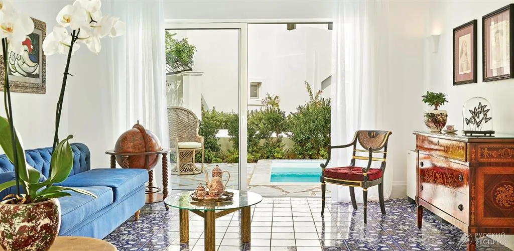 40 м2, номер в главном здании отеля вблизи бассейна, на первом этаже с частным садом, одной кроватью king-size, дополнительной односпальной кроватью и одной ванной комнатой. Максимальное количество гостей: 2 взрослых и ребенок.