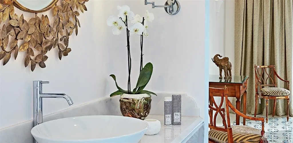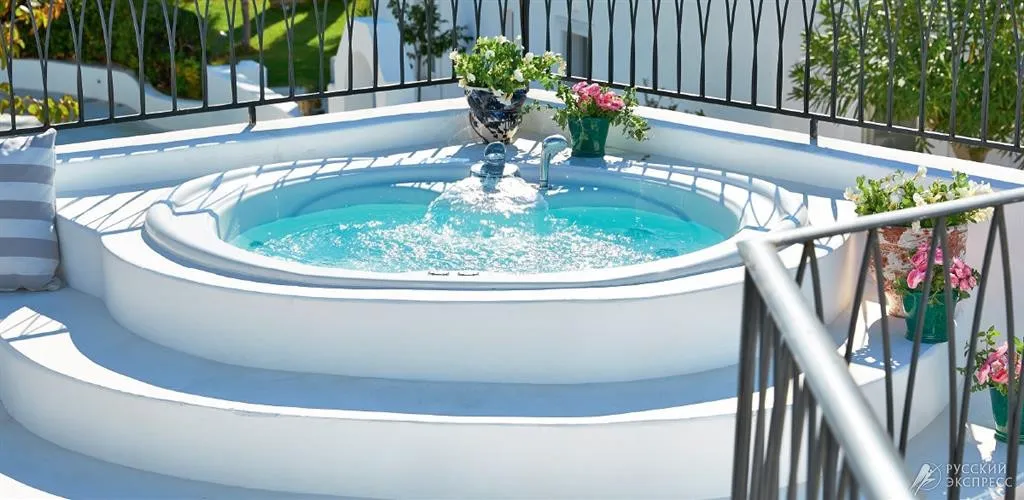 50 м2, номер на втором этаже главного здания отеля с видом на море, гидромассажной ванной на открытой террасе, одной кроватью king-size, одной ванной комнатой. Максимальное количество гостей: 2 взрослых.