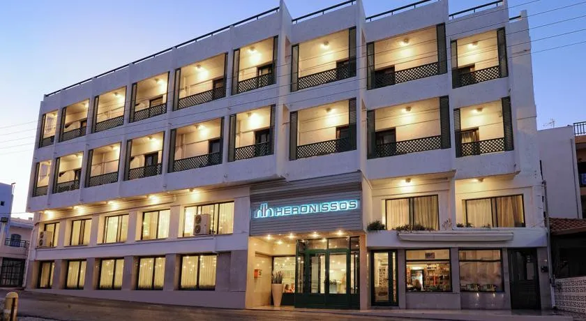 Практически в центре города Херсониссос, в пятиминутной удаленности от набережной с тавернами, дискотеками и магазинами, удобно расположился отель Heronissos гостиница, с которой началась история сети Hersonissos Group of Hotels. Курорт рассчитан на тех туристов, которые привыкли проводить отдых в путешествиях. У него даже нет собственной территории роль её выполняет большой бассейн.
