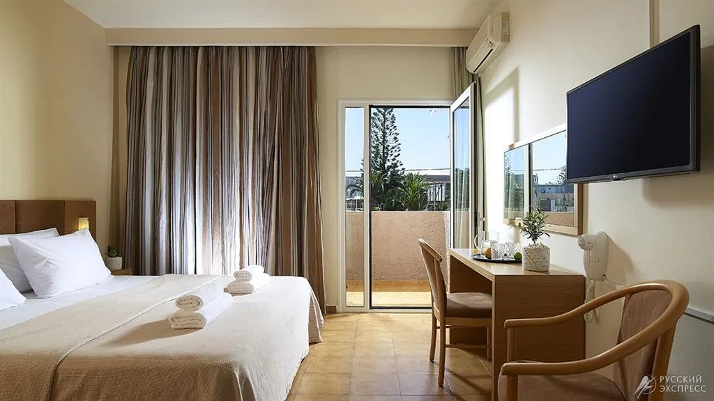 Уютный четырехзвездочный отель Malia Bay Hotel & Bungalows расположен на северном побережье острова Крит, недалеко от городка Малия, который пользуется популярностью у туристов. Знаменитый песчаный пляж Малия расстилается прямо перед отелем. На ухоженной, утопающей в зелени, территории отеля в распоряжении гостей два бассейна. На пляже и у двух бассейнов установлены удобные шезлонги и зонтики, позволяющие с комфортом принимать воздушные ванны. Просторные и светлые номера, со вкусом декорированные, в светлых пастельных тонах, оборудованы всеми необходимыми удобствами для комфортного отдыха. В каждом номере присутствует балкон или терраса, с которых открывается прекрасный вид на пышные сады отеля, на бассейн или на море. В ресторане отеля сервируют богатый шведский стол, с прекрасным выбором блюд международной и греческой кухни. Напитки и коктейли подаются в баре у бассейна и в лобби-баре. Для любителей активного отдыха, отель предлагает столы и оборудование для настольного тенниса, имеется площадка для пляжного волейбола и баскетбола. В течение дня и вечером, команда аниматоров проводит разнообразную программу мероприятий, таких как водная гимнастика, водное поло, различные игры, караоке, организовывается вечерний коктейль, бинго и дискотека. Два раза в неделю гости отеля могут поучаствовать в тематических вечерах.  Для детей в отеле предусмотрены игровая площадка, детский бассейн и мини клуб. В отеле также действует оздоровительный Wellness Spa центр, который предлагает процедуры по уходу за лицом и телом, выполняемые высокоспециализированными терапевтами.