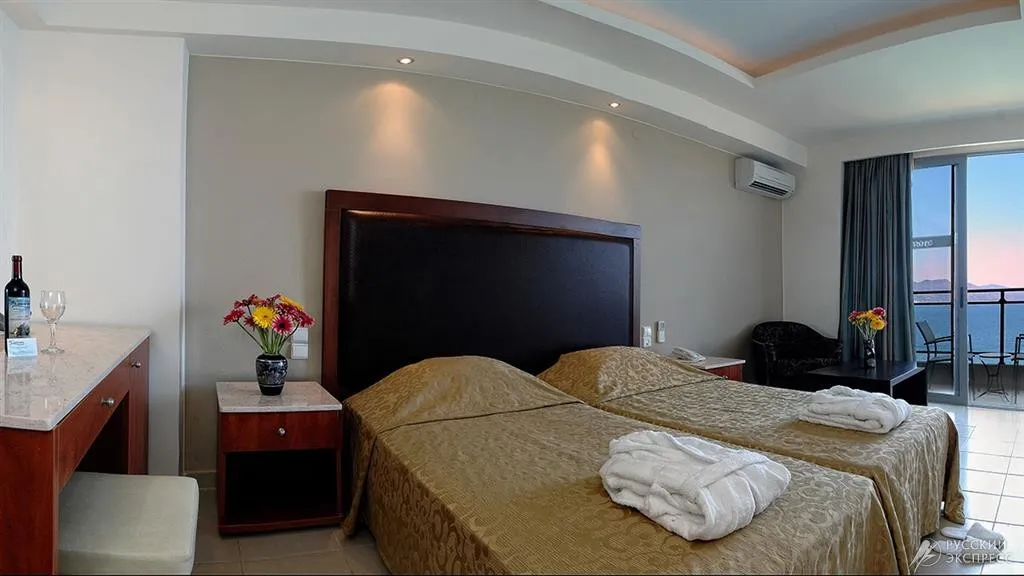 Mistral Mare Hotel - 4х звездочный отель, расположенный на склоне горы в типичной Критской деревушке Истрон. Всего в 200 метрах от отеля - знаменитый пляж "Золотой Берег", который награждён Голубым Флагом ЕС. С террас и балконов отеля открываются изумительный вид на залив Мирабелло, на зеленеющие холмы и оливковые рощи. Просторные и светлые номера в классических светлых тонах, обустроены всем необходимым для спокойного и приятного отдыха. Отель принимает своих гостей по системе "все включено". В ресторане отеля предлагается широкий спектр блюд местной и международной кухни, а так же вегетарианские блюда. На территории отеля в распоряжении гостей два бассейна, бары, тренажерный зал, мини-спа.
