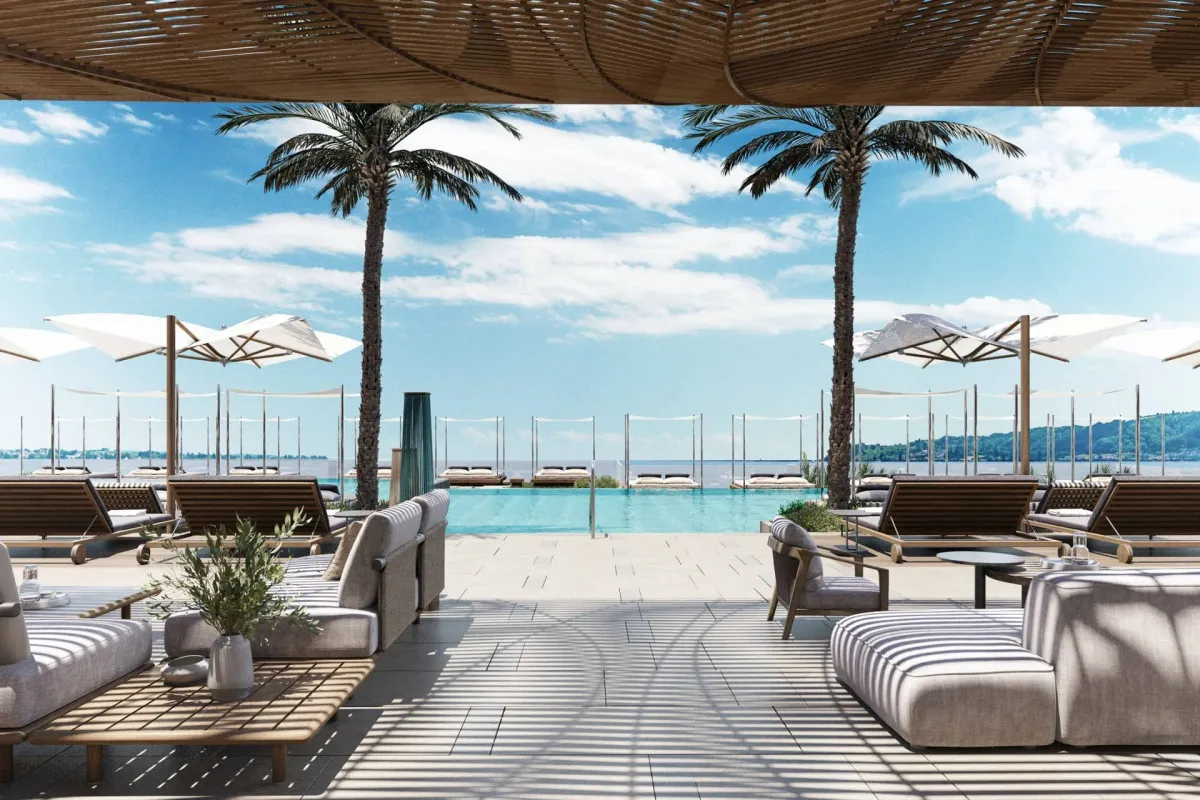 42 м2, двуспальная кровать размера «king-size», два дивана-кровати, открытая оборудованная терраса с бассейном и видом на море. Кол-во гостей: 4