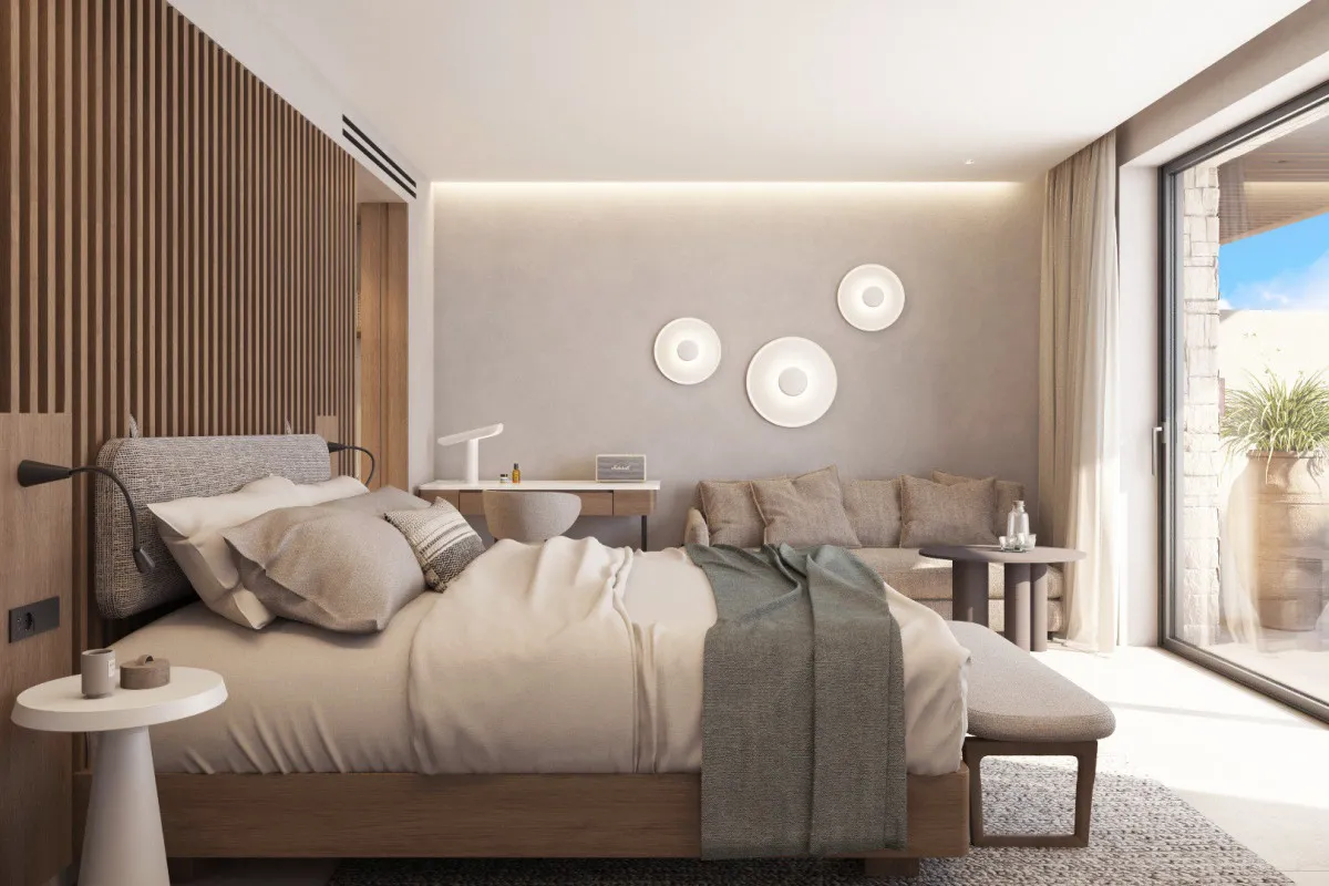 Современный космополитичный характер сочетается здесь с подлинной архитектурной эстетикой Крита. Каждый элемент пространства продуман до мелочей: от форм зданий до оттенков, отражающих золотой песок и теплое солнце острова. Пространства курорта создают ощущение легкости, простора и ритма, заданного природой. Сдержанная роскошь дополняется аутентичными текстурами, продуманными интерьерами и вниманием к деталям, превращая пребывание в эстетическое и эмоциональное переживание.