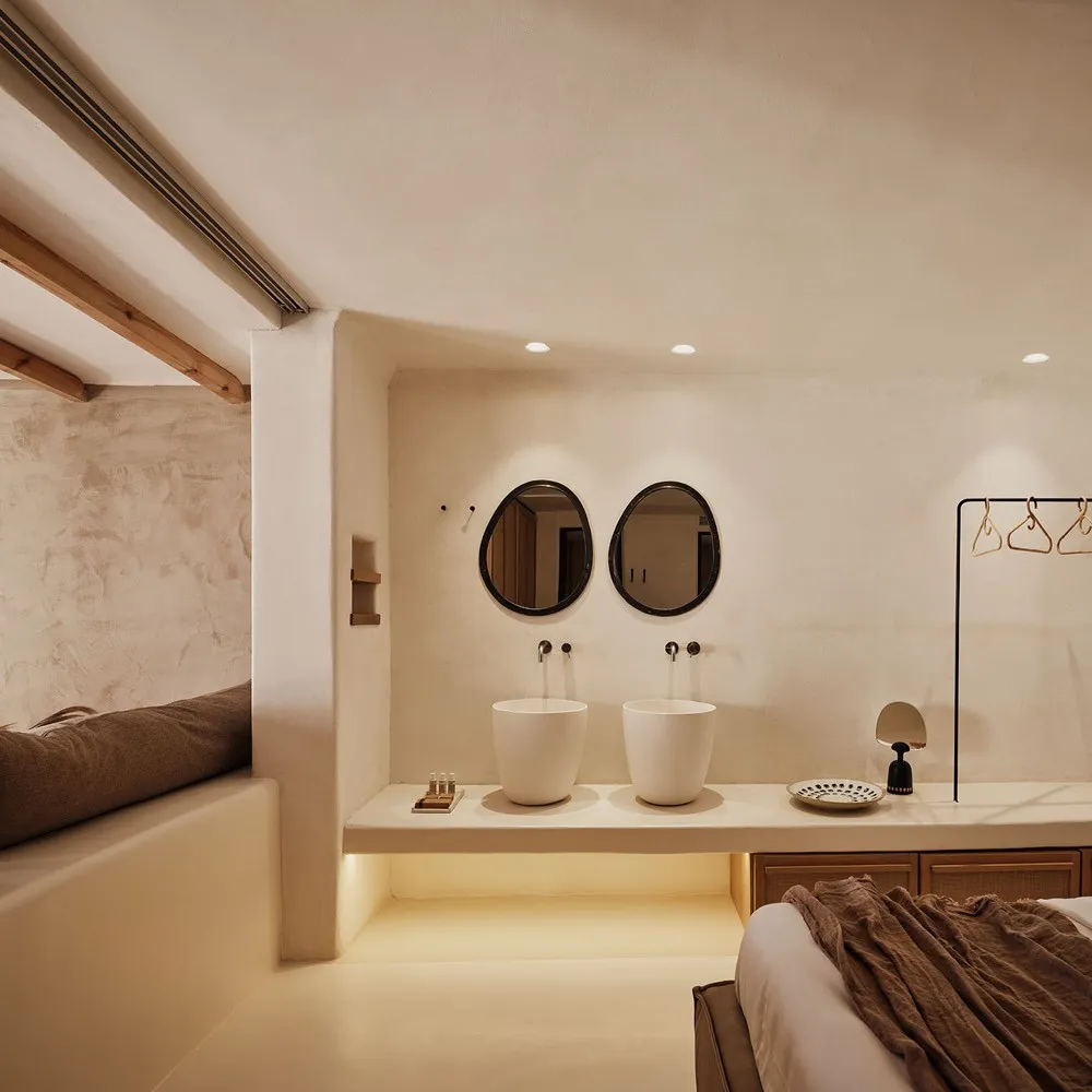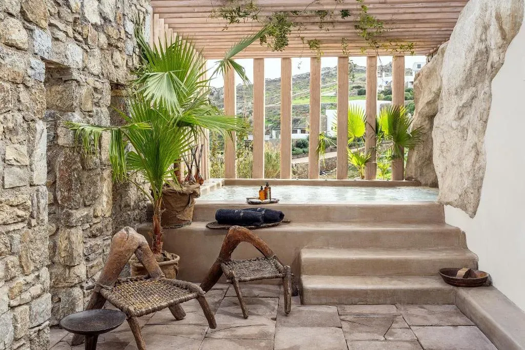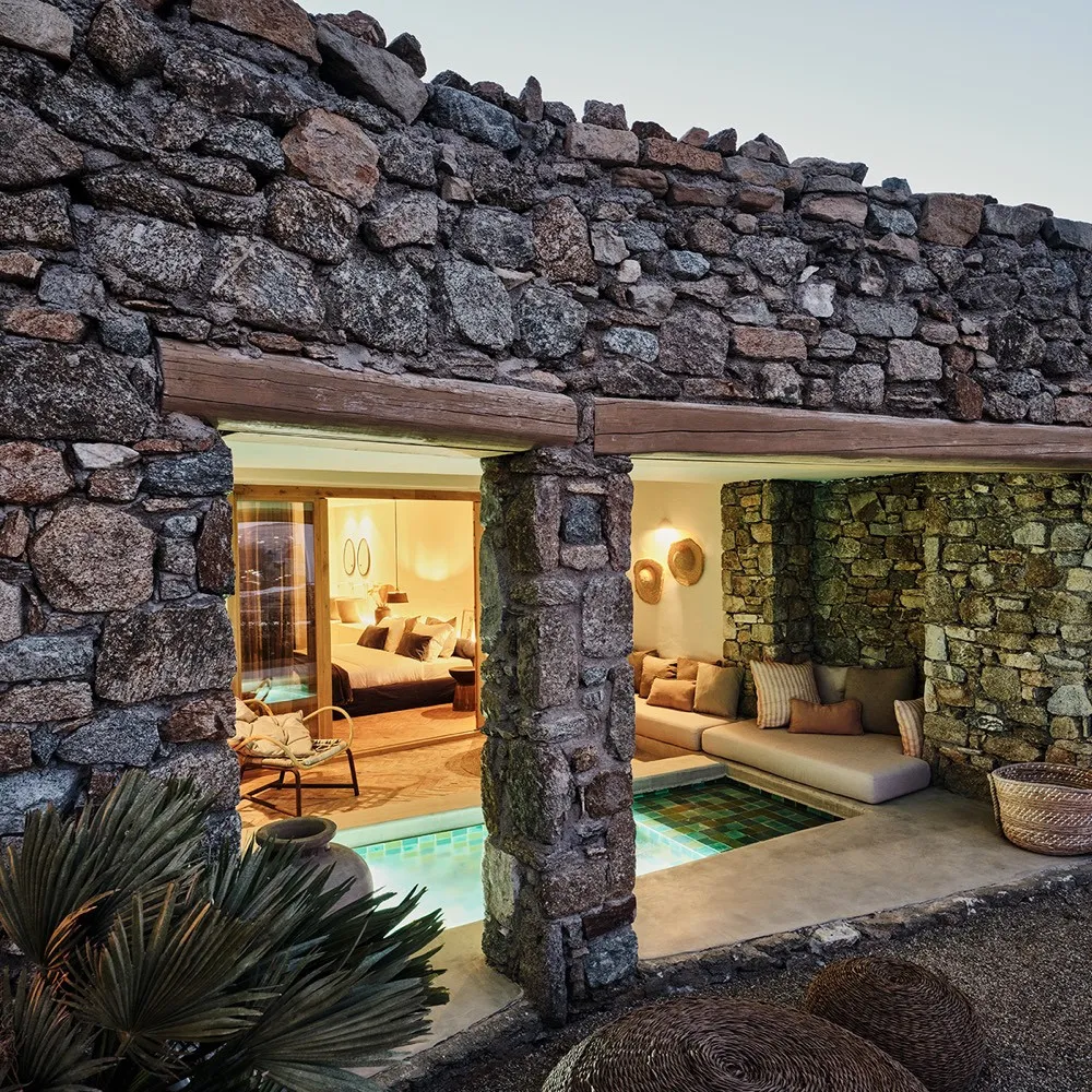 The Wild by Interni – пятизвездочный отель, расположенный на первой береговой линии в спокойной части Миконоса, в двадцати минутах езды от столицы острова. Это место подойдет тем, кто ценит приватность, природное окружение и премиальный уровень сервиса.