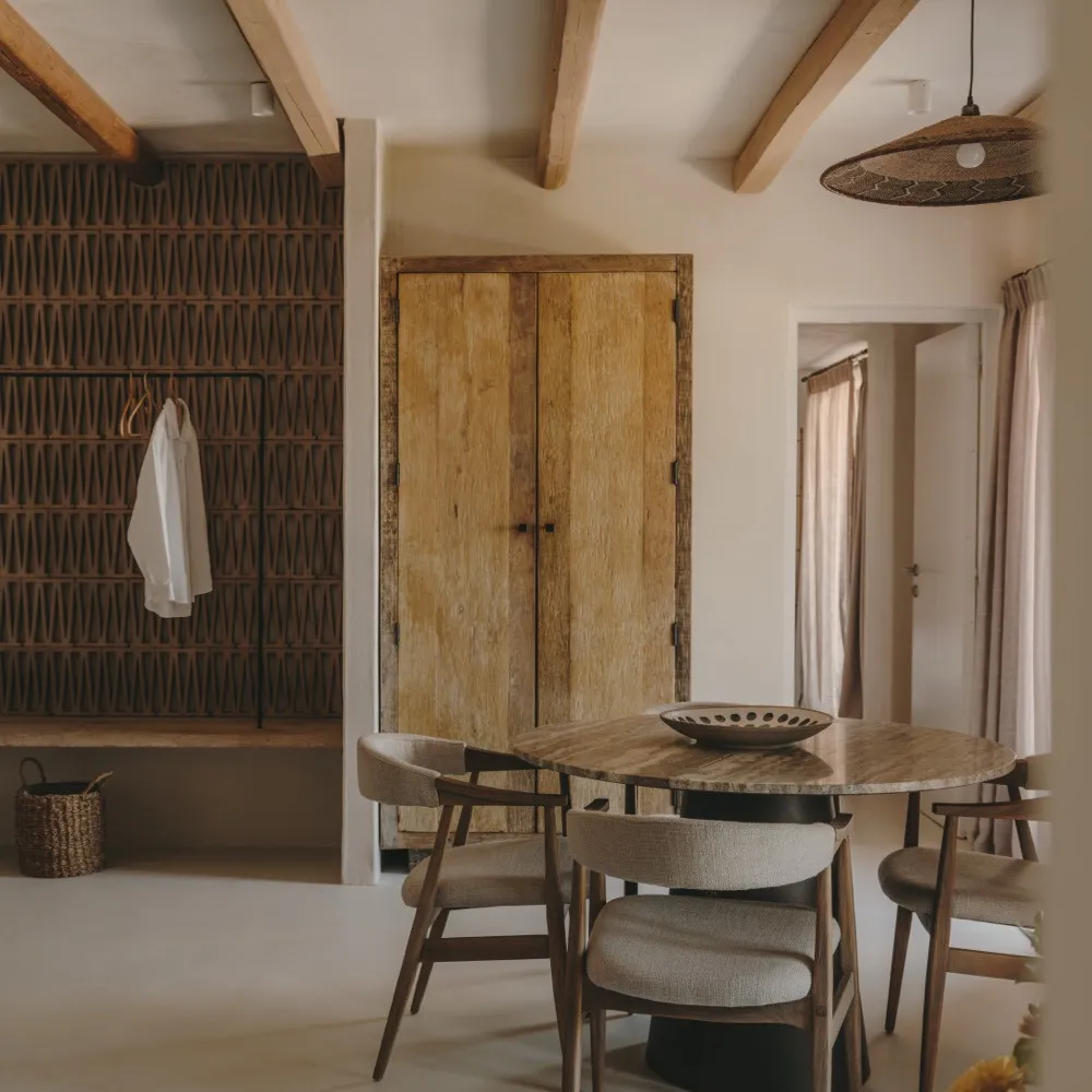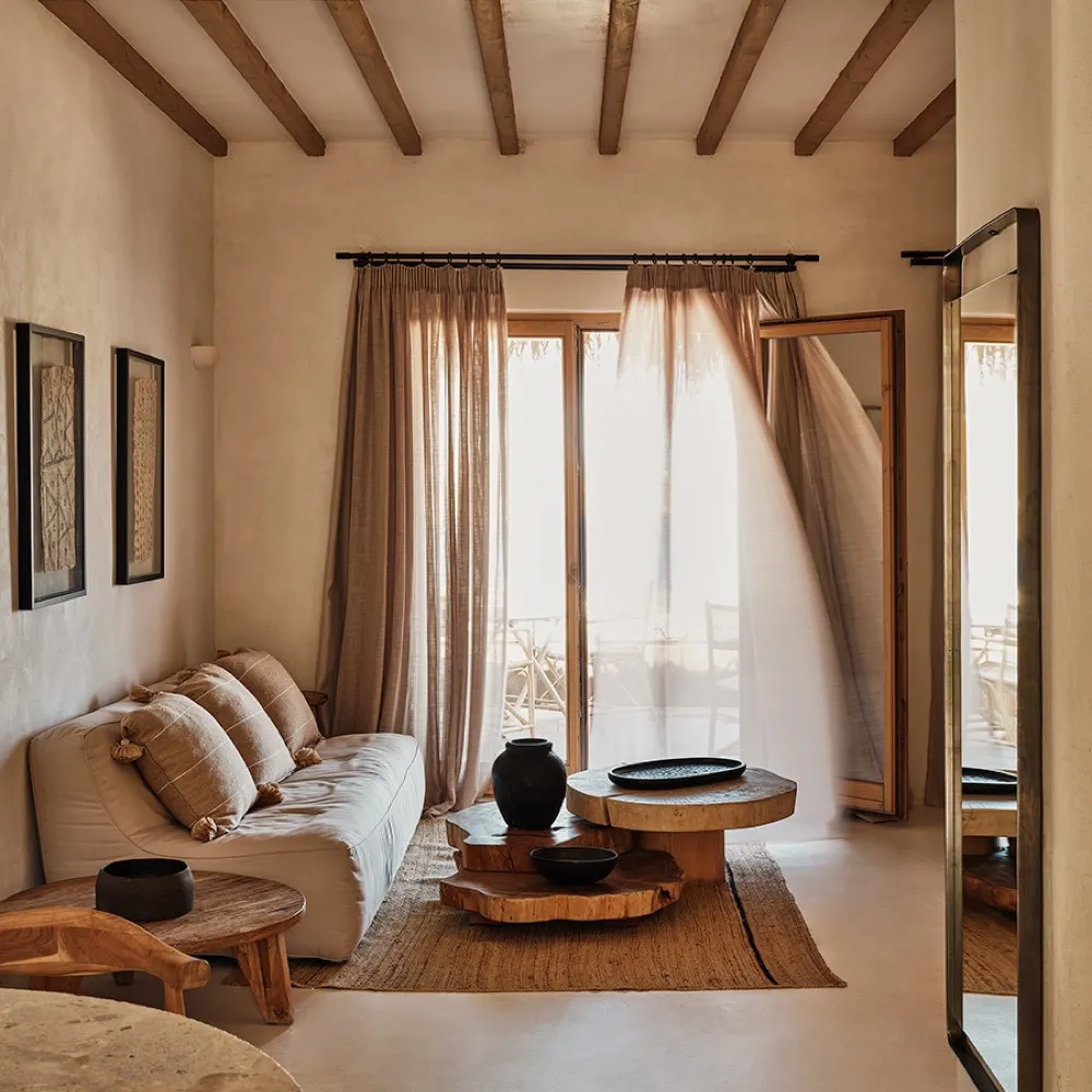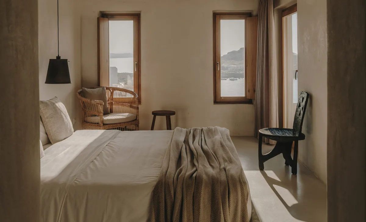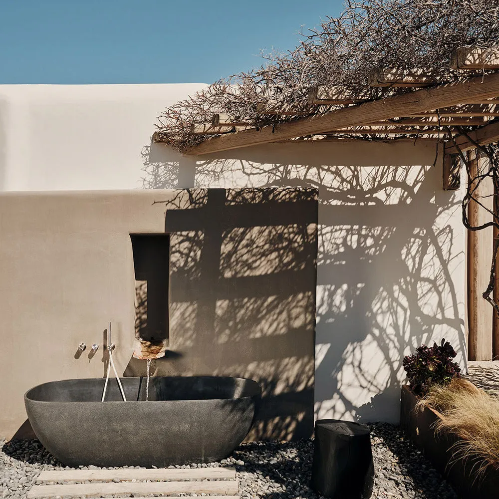 Архитектура комплекса сочетает традиции кикладского стиля и естественные материалы: камень, дерево и терракоту. Интерьеры оформлены в мягкой природной палитре и дополнены дизайнерской мебелью и предметами ручной работы.