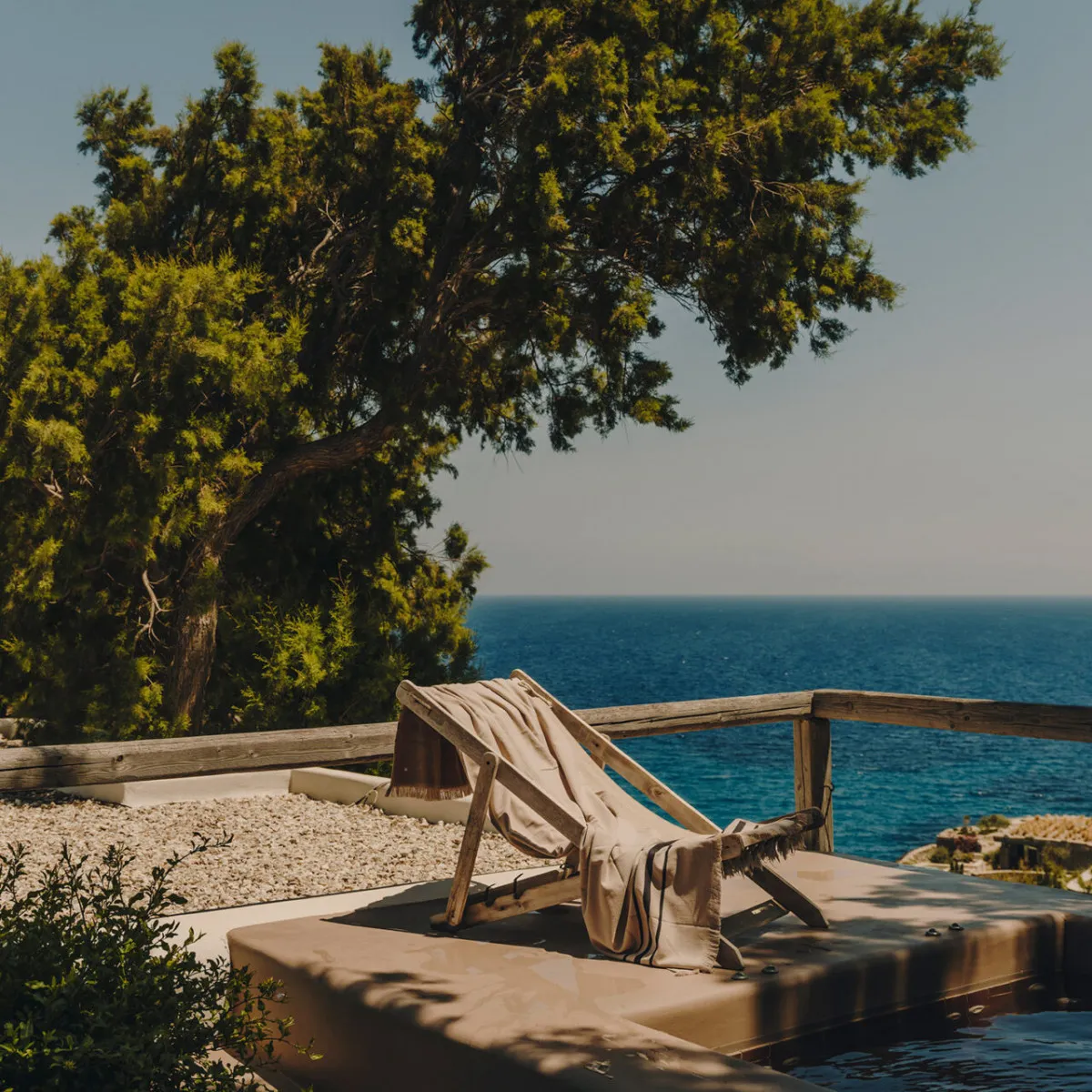 Центральная зона отдыха – инфинити-бассейн с видами на Эгейское море. Рядом расположена природная бухта с удобным входом в лагуну, где гости могут купаться и расслабляться в тени пальмовых навесов.