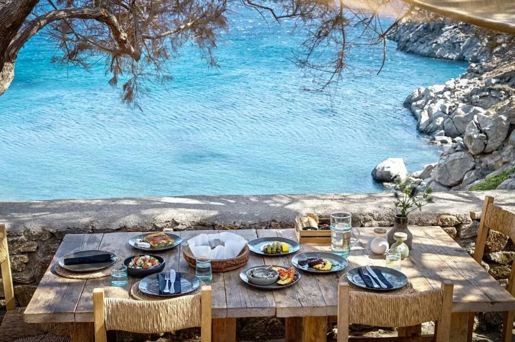 Гастрономическая концепция представлена двумя ресторанами. В аутентичной таверне акцент сделан на сезонных местных продуктах – свежих овощах, традиционных копченостях, сырах и блюдах греческой кухни. Здесь подают домашний хлеб, легкие закуски и блюда, приготовленные с использованием фермерских ингредиентов.