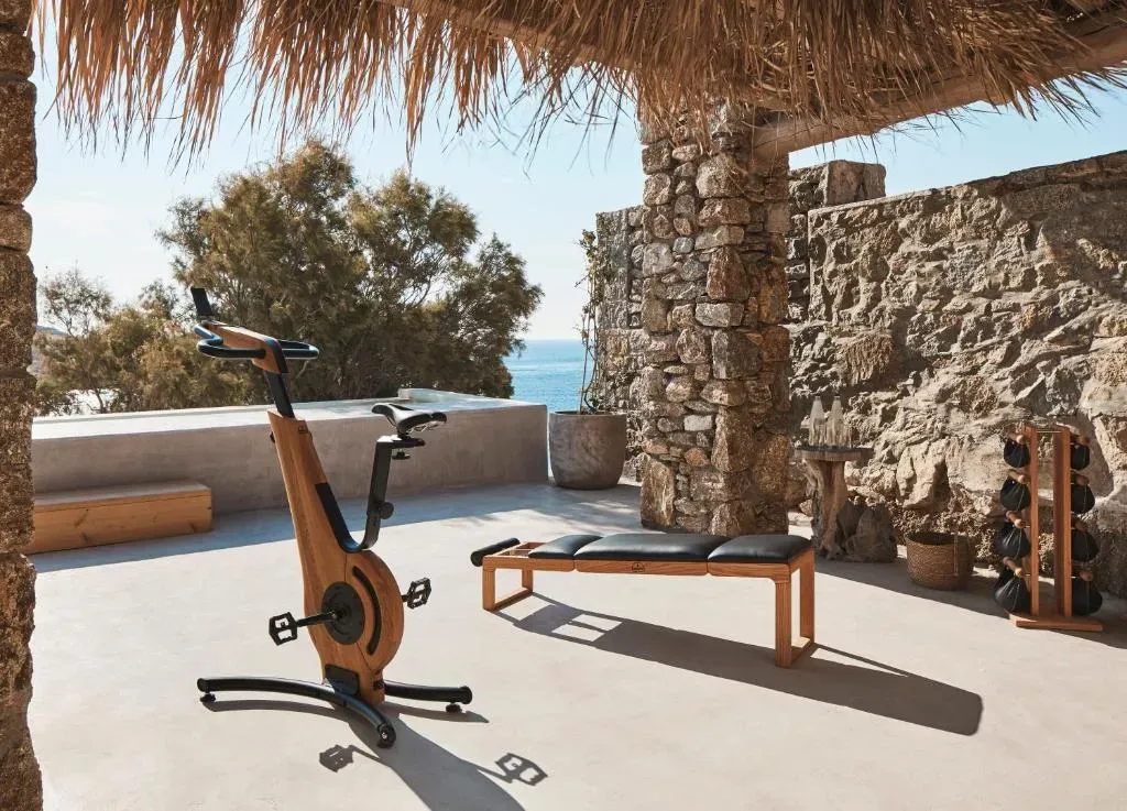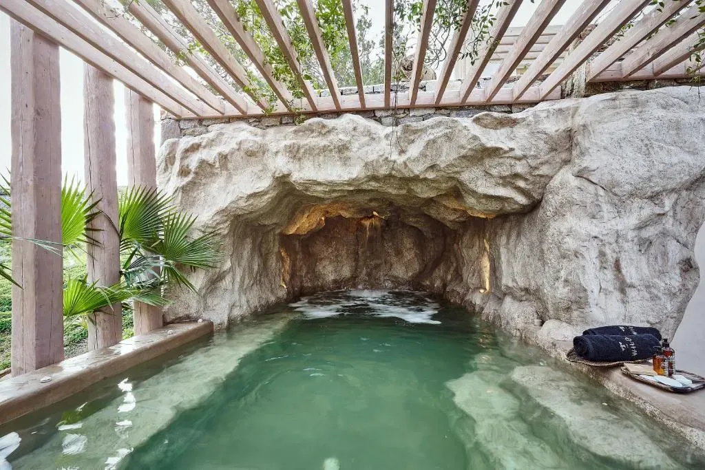 В спа-центре расположен бассейн-водопад, оформленный в виде открытой природной пещеры, а также два кабинета для индивидуальных процедур. Дополняет инфраструктуру компактный фитнес-уголок на свежем воздухе, подходящий для легких тренировок с видом на море.