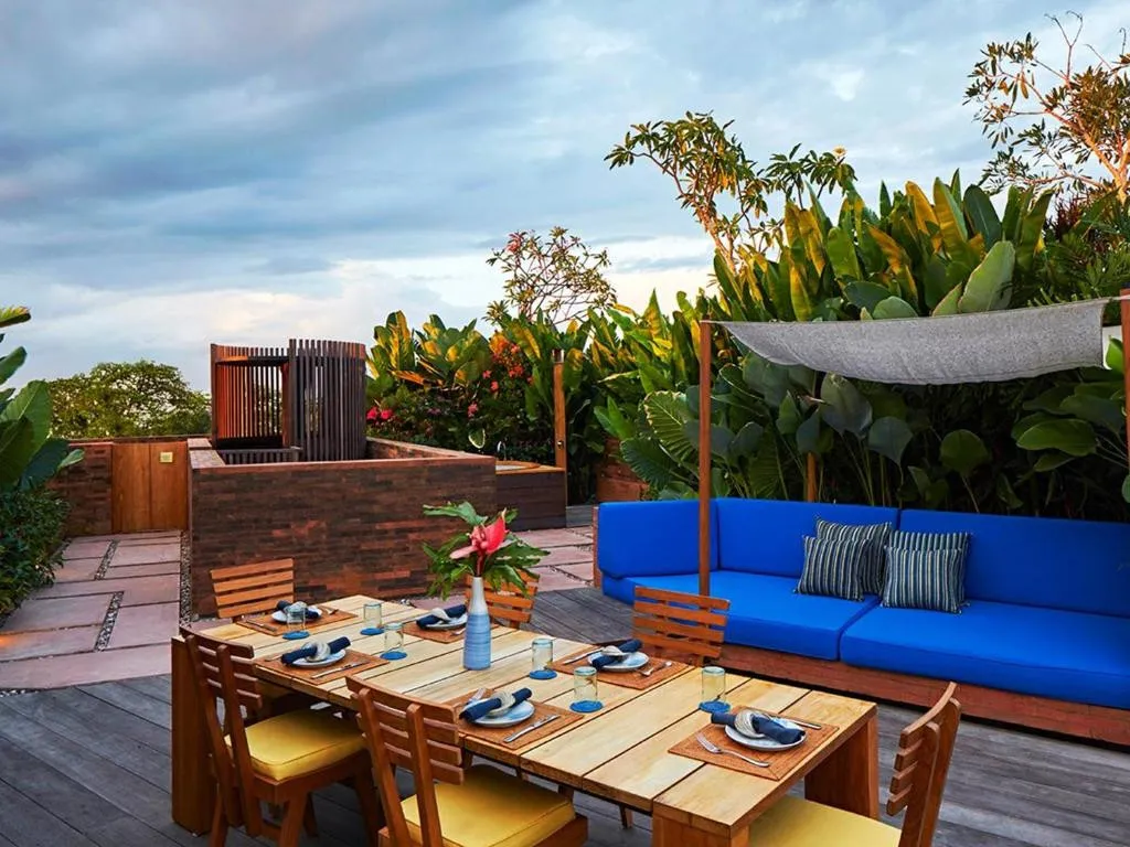 В Desa Potato Head гармонично сочетаются современный балийский стиль и традиционные элементы. В интерьерах номеров используются экоматериалы и авторская мебель, а территория отеля напоминает арт-галерею под открытым небом. Туристов ждут несколько бассейнов, включая инфинити-бассейн с видом на океан, фитнес-центр с профессиональным оборудованием и спа-комплекс, предлагающий разнообразные велнес-программы. Гастрономические впечатления обеспечат рестораны с мировой кухней и авторскими коктейлями, а в пляжном клубе с живой музыкой всегда кипит яркая ночная жизнь.