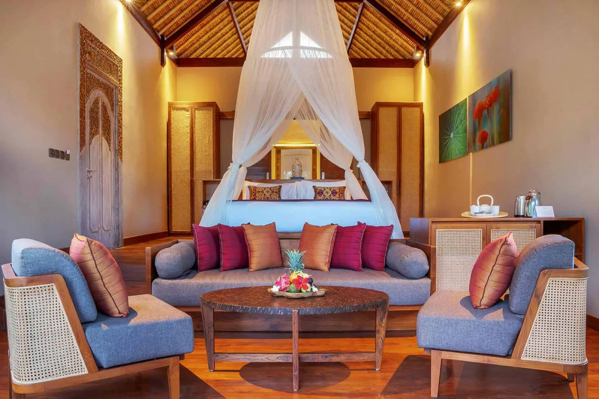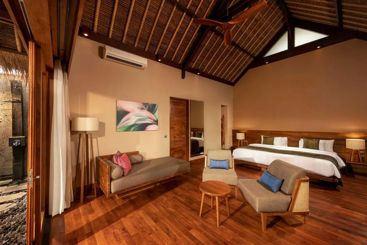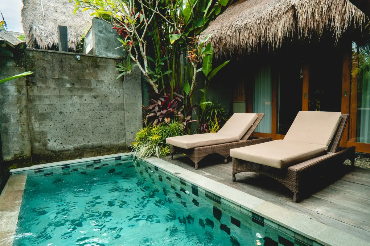 98 м2, двуспальная кровать размера «king-size» или две односпальные кровати, терраса с частным бассейном и видом на балийский сад, кол-во гостей: 2