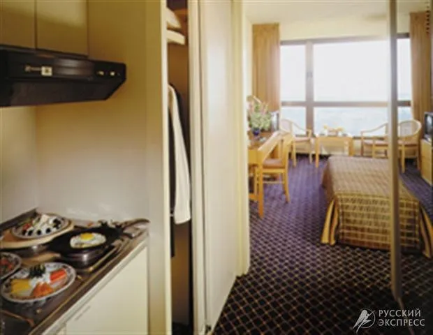 центральный кондиционер, балконов нет, кабельное TV(русский канал), мини-бар (без напитков), ванна , фен, туалет, уборка 1 раз в день, телефон, возможность подключения модема, интернет (за дополнительную плату).