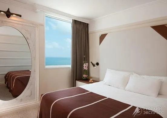 Ванна/душ, индивидуальный кондиционер, TV (плазменный экран LCD 32), кровать Sweet Sleepers, телефон, мини-бар, сейф, радио, фен, электро-чайник, набор для кофе, интернет Wi-Fi (за дополнительную плату). Кроме того, к вашим услугам уборка номера и услуги горничных 24 часа в сутки. Во всех номерах есть балкон с видом на Средиземное море.