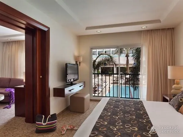 окна которых выходят на комплекс бассейнов, а также номера с садом, где можно отдохнуть и расслабиться.