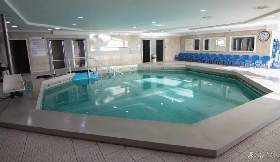 Открытый бассейн с пресной водой  (в зимний период подогревается по выходным дням, шезлонги и зонтики бесплатно).