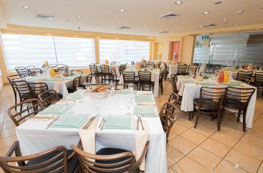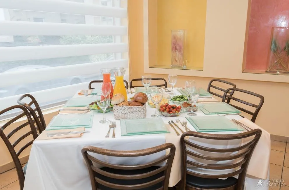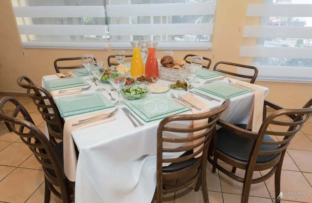 • Предлагает богатый ассортимент блюд, приготовленных по домашнему, искусным шеф-поваром. Утром – богатый израильский буфет. В обед и ужин индивидуальный сервис. В конце недели гостям гостиницы предлагается праздничный субботний ужин.