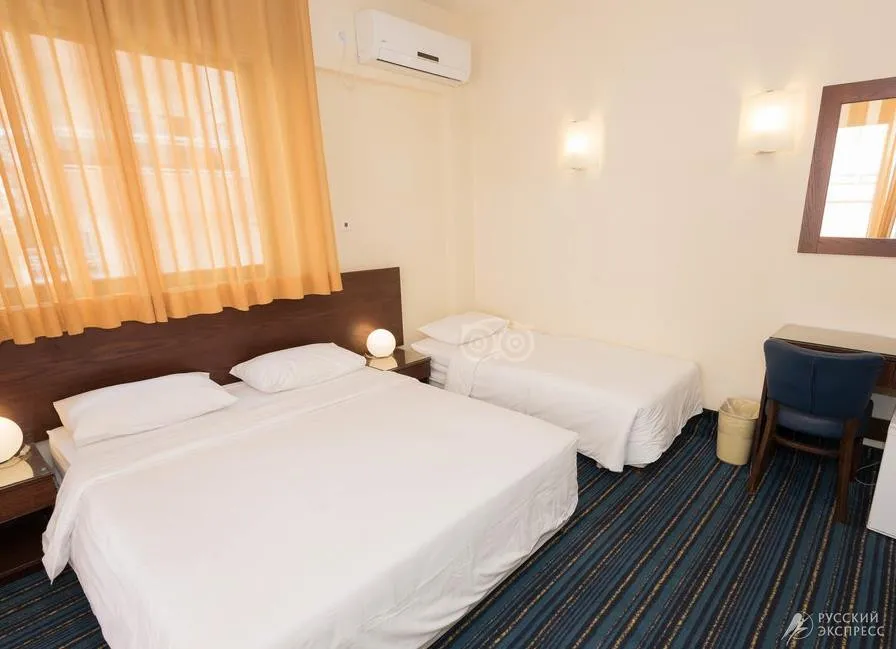 Пляж городской, песок. Зонтики, шезлонги, матрасы – за дополнительную плату. На пляже кафе, душ, услуги спасателей (в сезон). Пляжные полотенца отель не предоставляет.