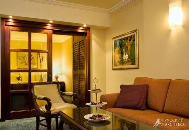 ванна, балкон, центральный кондиционер, спутниковое TV (есть русский канал), телефон, Интернет, мини-бар, сейф, фен. Уборка номера ежедневно.