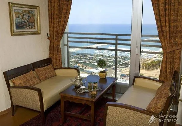 Отель расположен на берегу Средиземного моря с прямым выходом на пляж, в 30 минутах езды от а/п им. Бен Гуриона. 16-ти этажное здание.