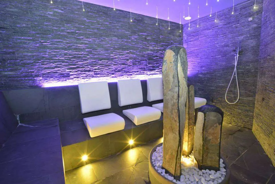 гостиная, гардеробная, круглая гидромассажная ванна с зоной отдыха