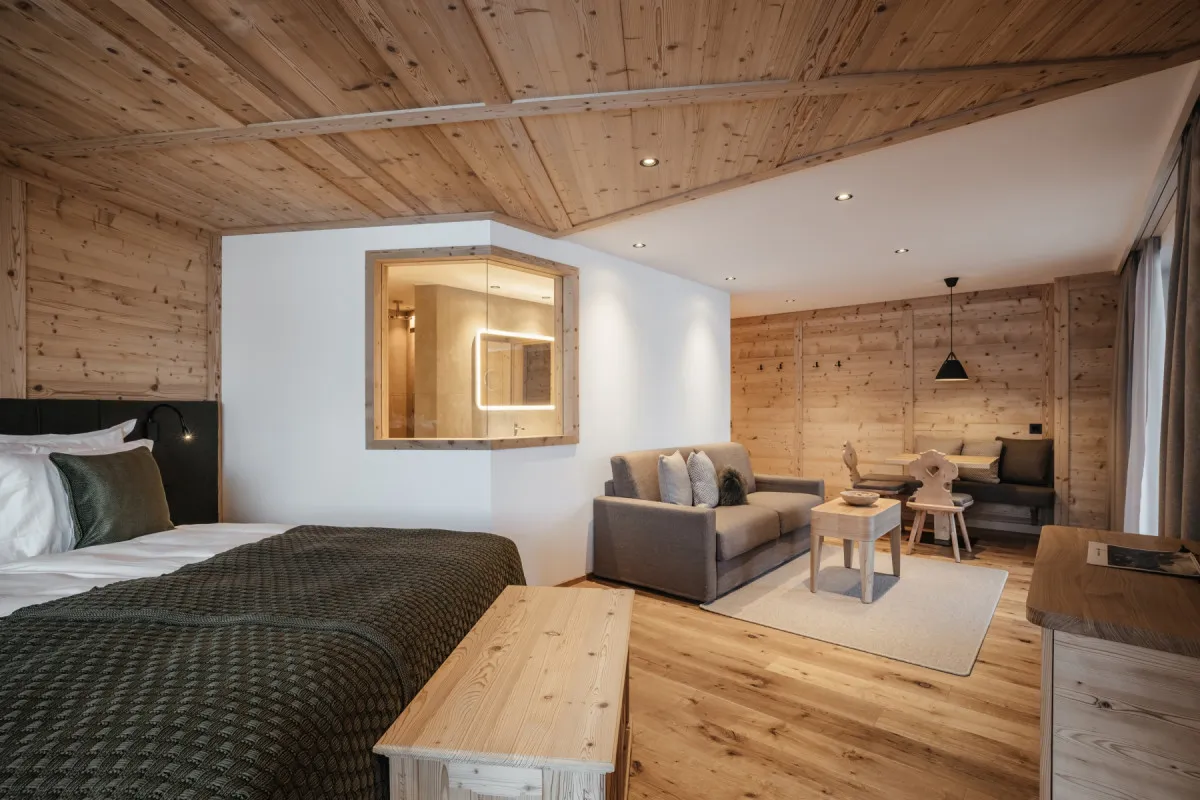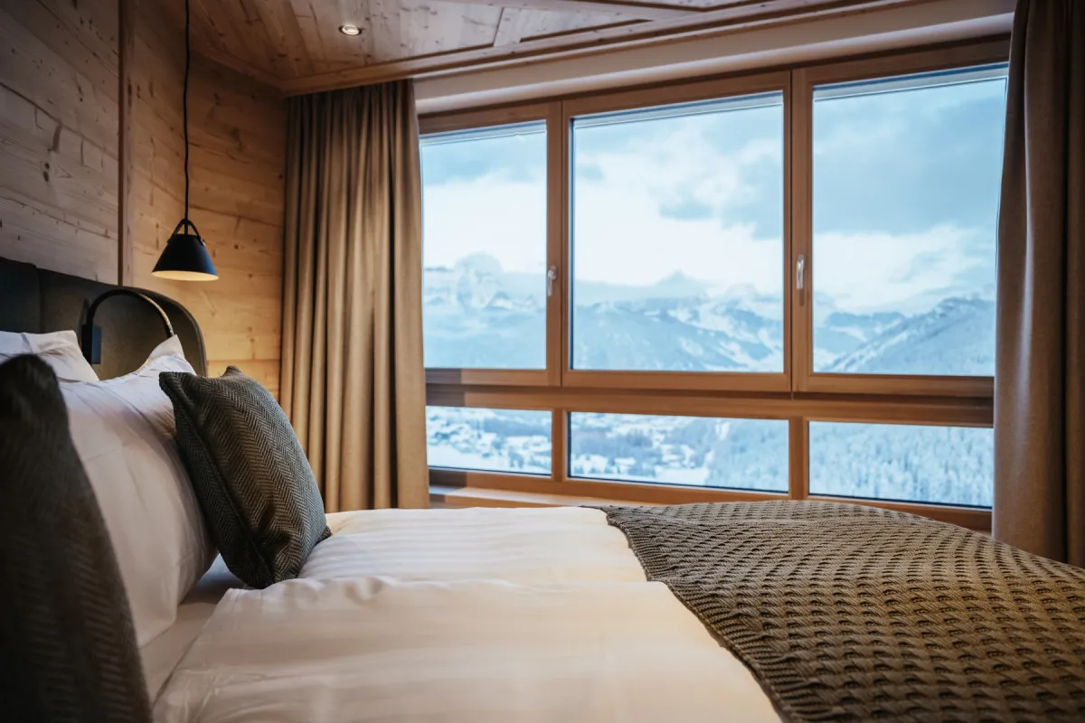32-37 м2, балкон, вид на горы, спальня, гостиная или гостиная зона, гардеробная (в некоторых номерах). Некоторые номера двухуровневые. Количество гостей: до 4
