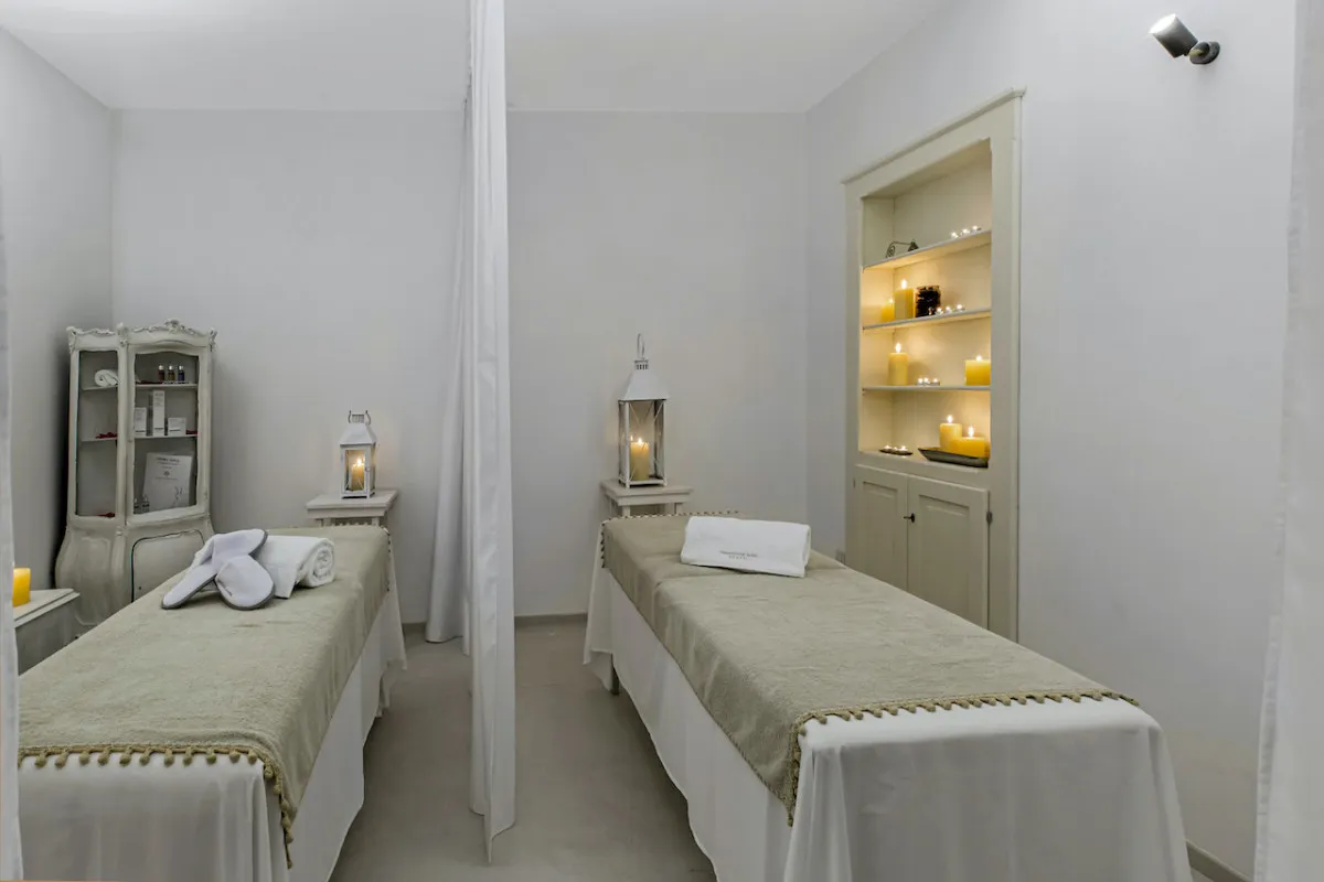 45 м2, частный внутренний двор, прямой выход к бассейну, двуспальная кровать, гостиная. Потолок комнат украшен фресками, изображающими сцены из легенды о Святом Георгии Победоносце