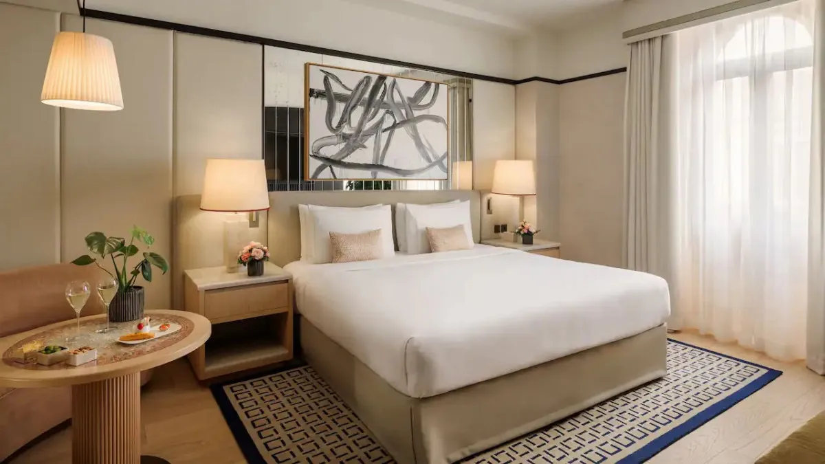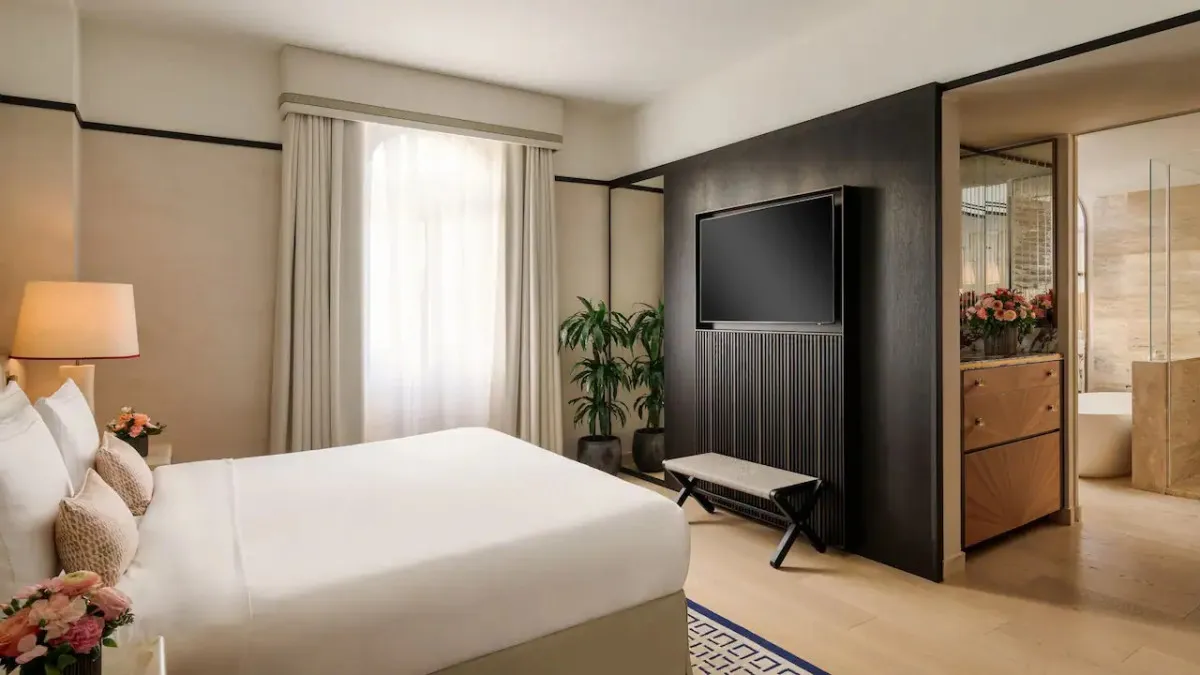 42 м2. В номере: кровать king-size, стол, телевизор, мраморная ванная комната.