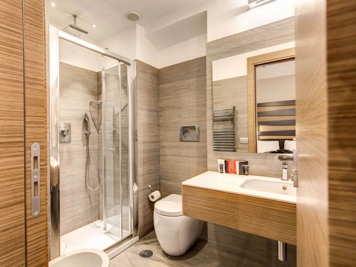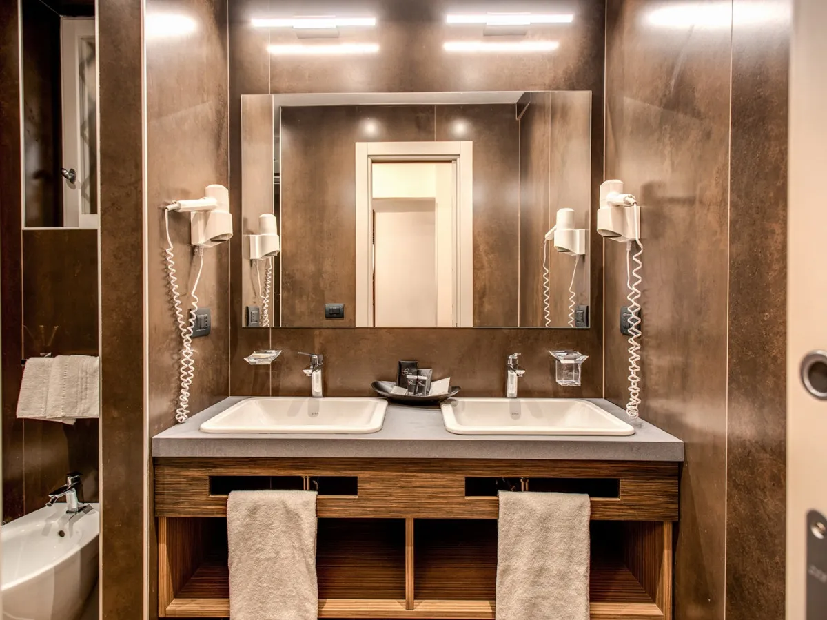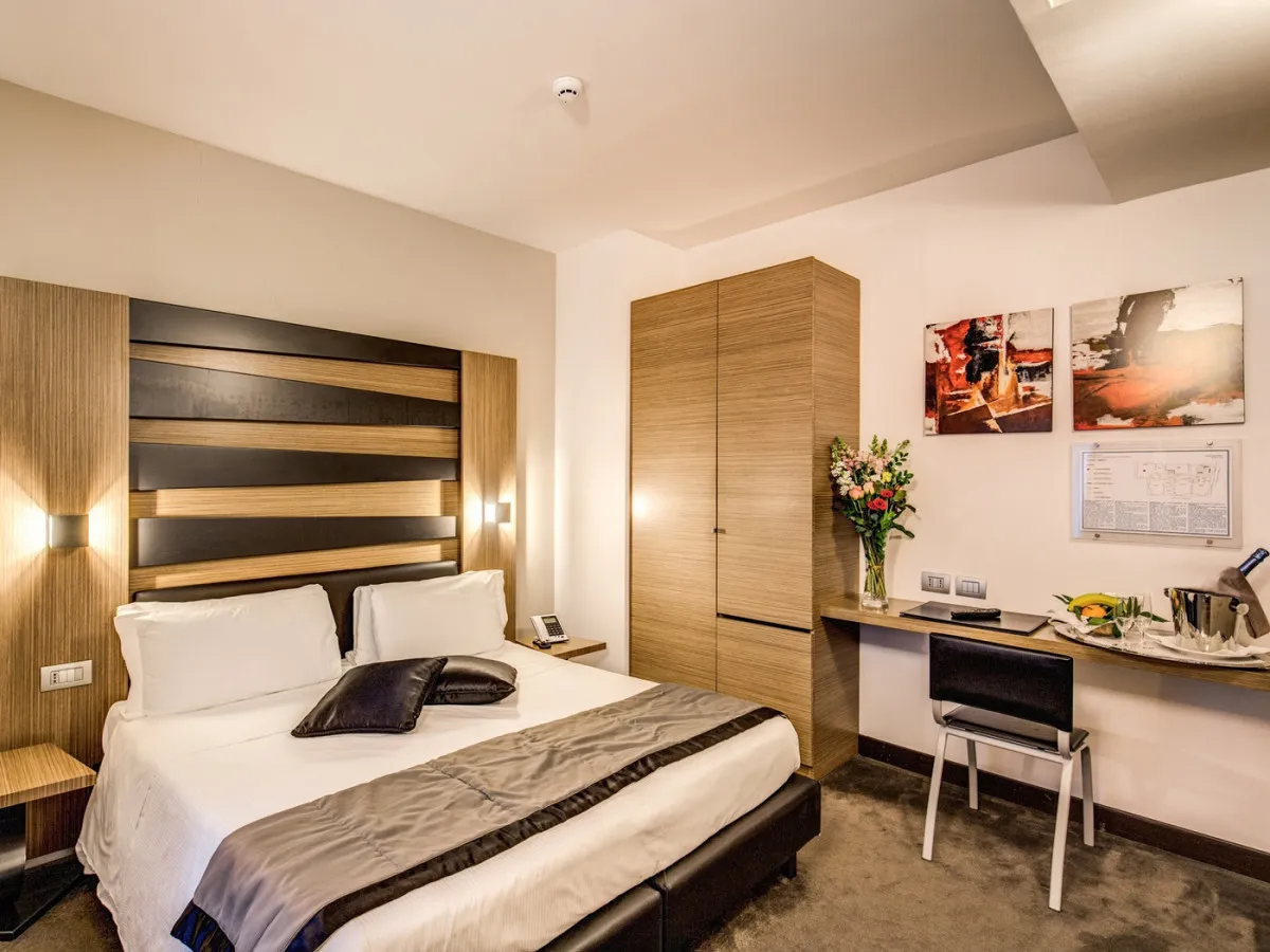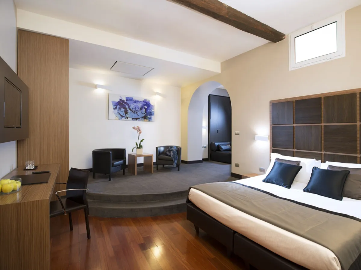 Интерьеры отеля объединяют подлинный римский характер и современный дизайн. Открытые деревянные балки, аутентичные материалы и оригинальные архитектурные детали создают атмосферу исторического Рима, дополненную чистыми линиями, продуманным освещением и спокойной палитрой натуральных оттенков, навеянных камнем и деревом. Просторные и тихие номера спроектированы с особым вниманием к деталям, обеспечивая ощущение уюта и гармонии.