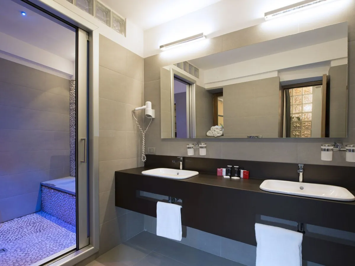 Люксы подчеркивают уникальную архитектуру зданий, в которых они расположены. Старинные кирпичные арки, каменные и галечные душевые, внутренние дворики и террасы с живописными видами делают каждое пространство индивидуальным и запоминающимся. Высокий уровень сервиса сохраняется во всех корпусах отеля.