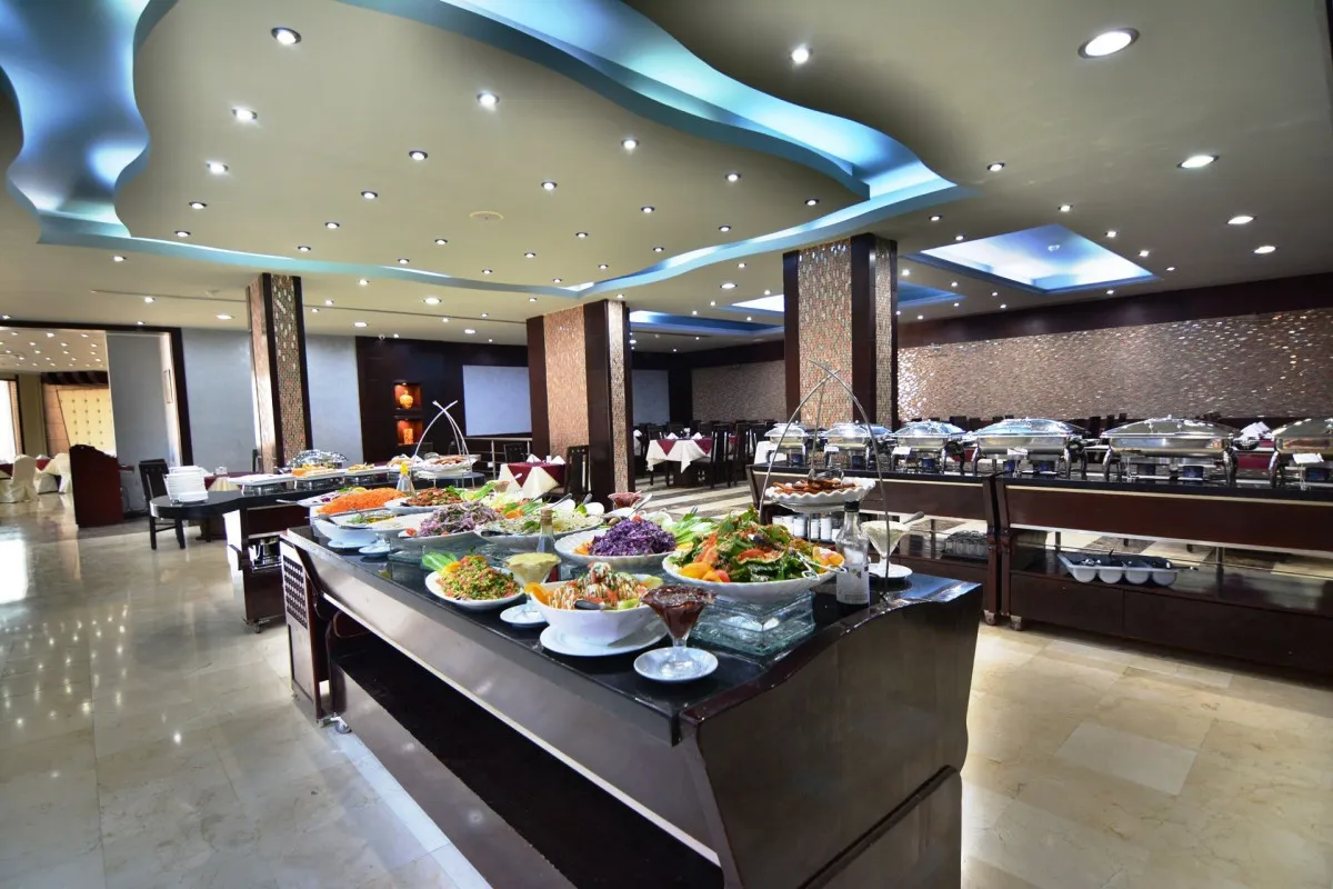 Ресторан предлагает блюда иорданской и интернациональной кухонь.