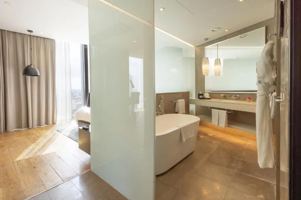 Amman Rotana – современный пятизвёздочный отель в самом сердце района Абдали, нового динамичного центра Аммана. Высотная башня на 50 этажей предлагает 411 элегантных номеров и люксов с панорамными видами на город благодаря оконным витражам от пола до потолка. Отель расположен в 45 минутах езды от Международного аэропорта Королевы Алии, неподалёку от Амманской цитадели и Римского театра. Гостей ждут изысканные пространства, современные зоны отдыха, стильные рестораны и клуб Bodylines Fitness & Wellness.