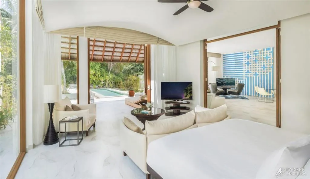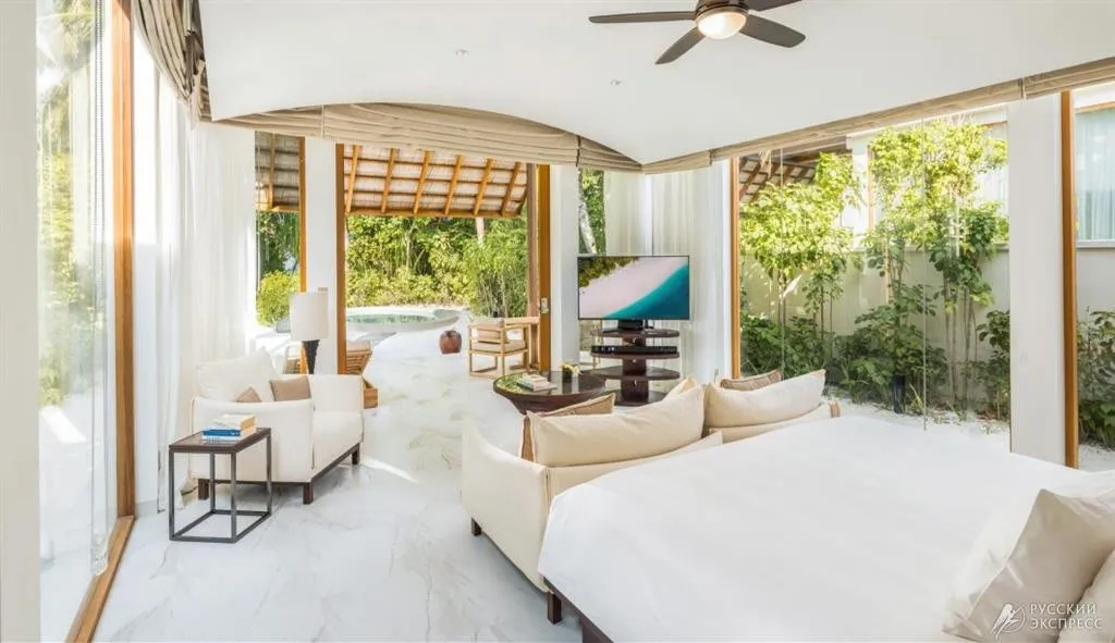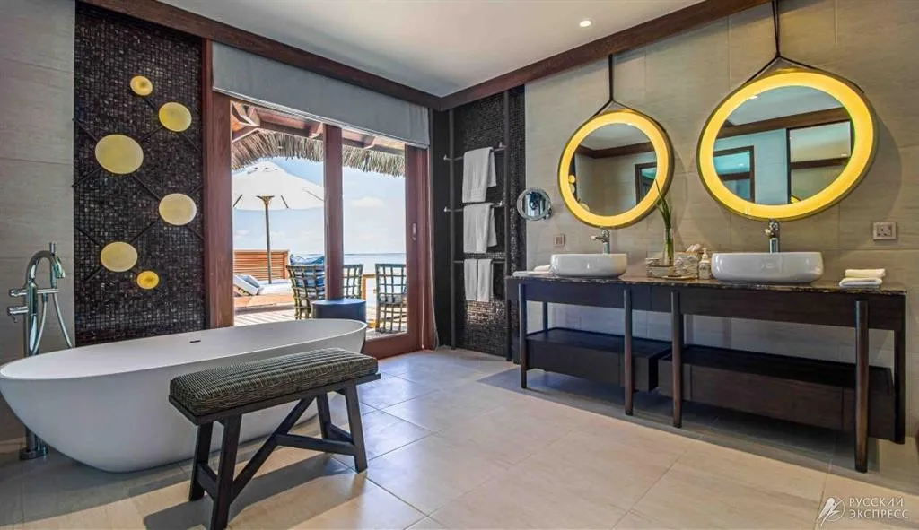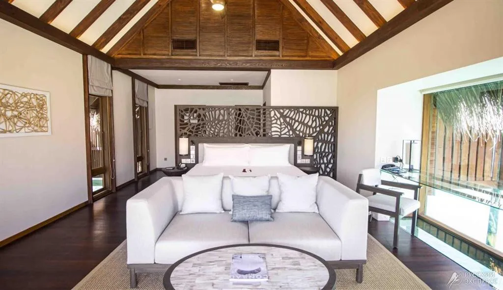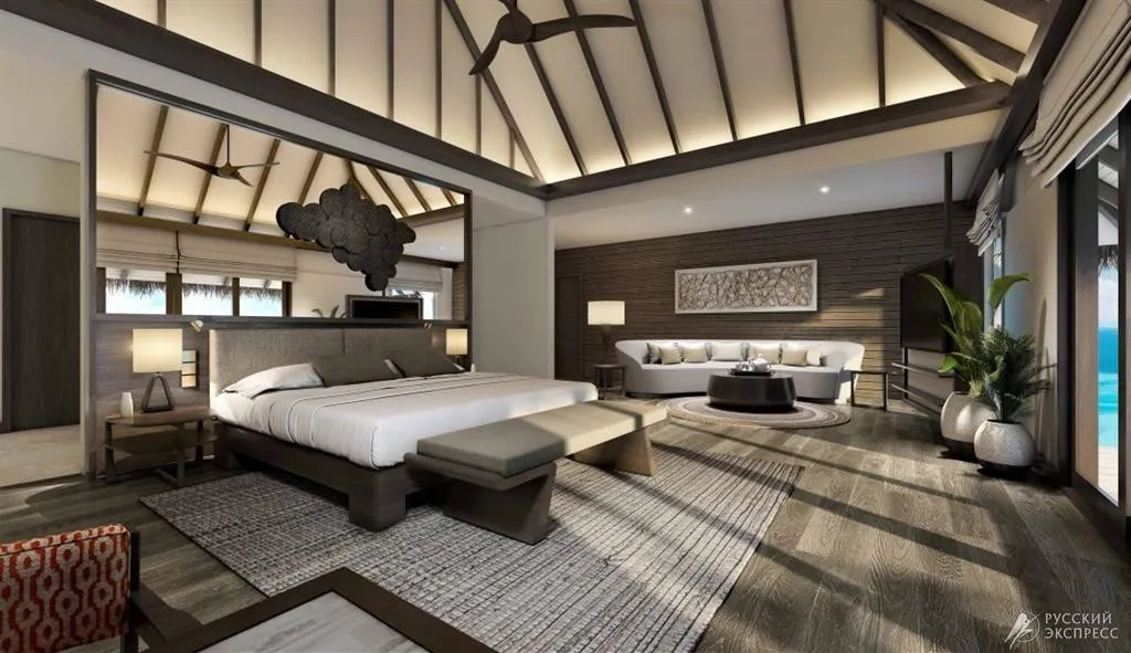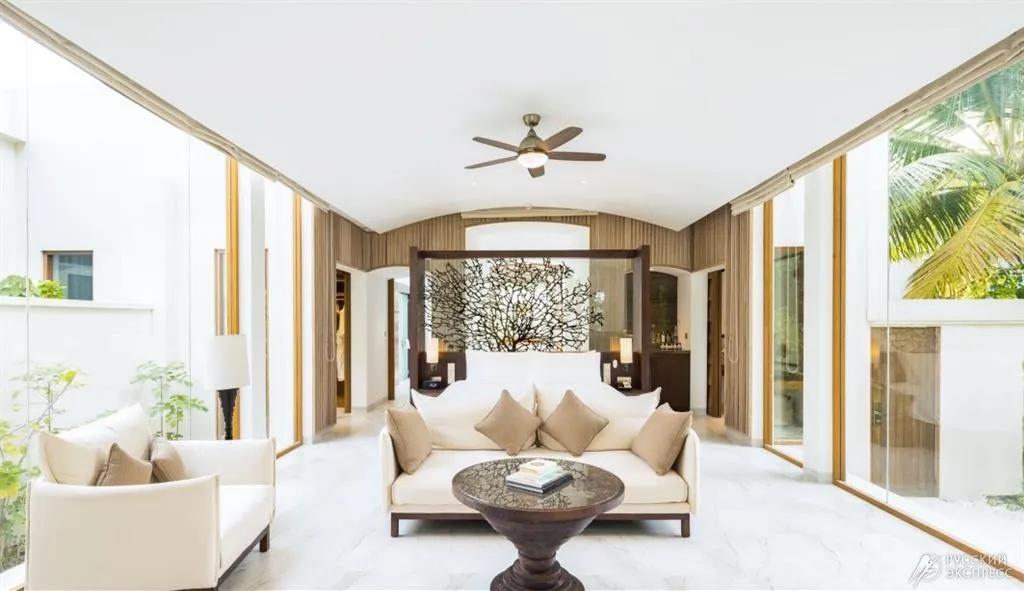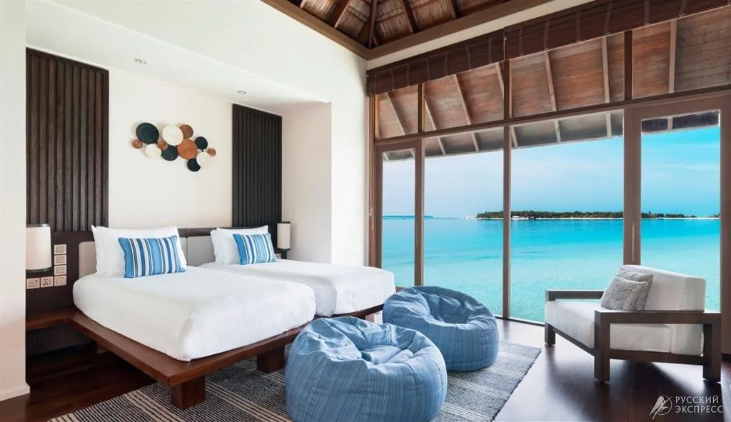 Элегантные пляжные виллы утопают в тропической зелени и ведут прямо к белоснежному песку, а виллы на воде возвышаются над лагуной, открывая панорамные виды на океан и закаты. Особая гордость курорта – The Muraka, первая в мире подводная резиденция с панорамными стенами из стекла, позволяющими наблюдать за жизнью океана прямо из спальни.