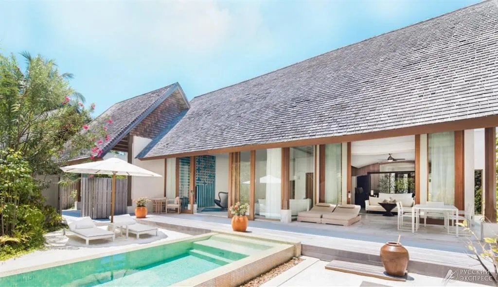 • частный бассейн на террасе (на виллах Deluxe Beach Villa with Pool, Two Bedroom Deluxe Beach Villa, Water Villa with Pool, Sunset Water Villa with Pool, Grand Water Villa with Pool, Grand Water Villa with Pool – Sunrise/ Sunset, The Muraka и других виллах с Pool)