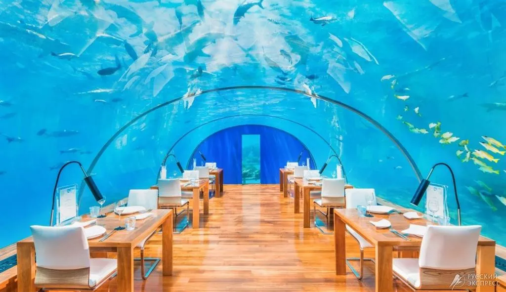 • Ithaa Undersea Restaurant – подводный ресторан на глубине пяти метров с панорамным обзором кораллового рифа. Меню состоит из дегустационных сетов высокой кухни с морепродуктами и мясом премиум-класса. Режим работы: завтрак с 08:00 до 09:30, визит для осмотра с 11:00 до 12:00, обед с 12:30 до 15:00, ужин с 18:00 до 21:00
