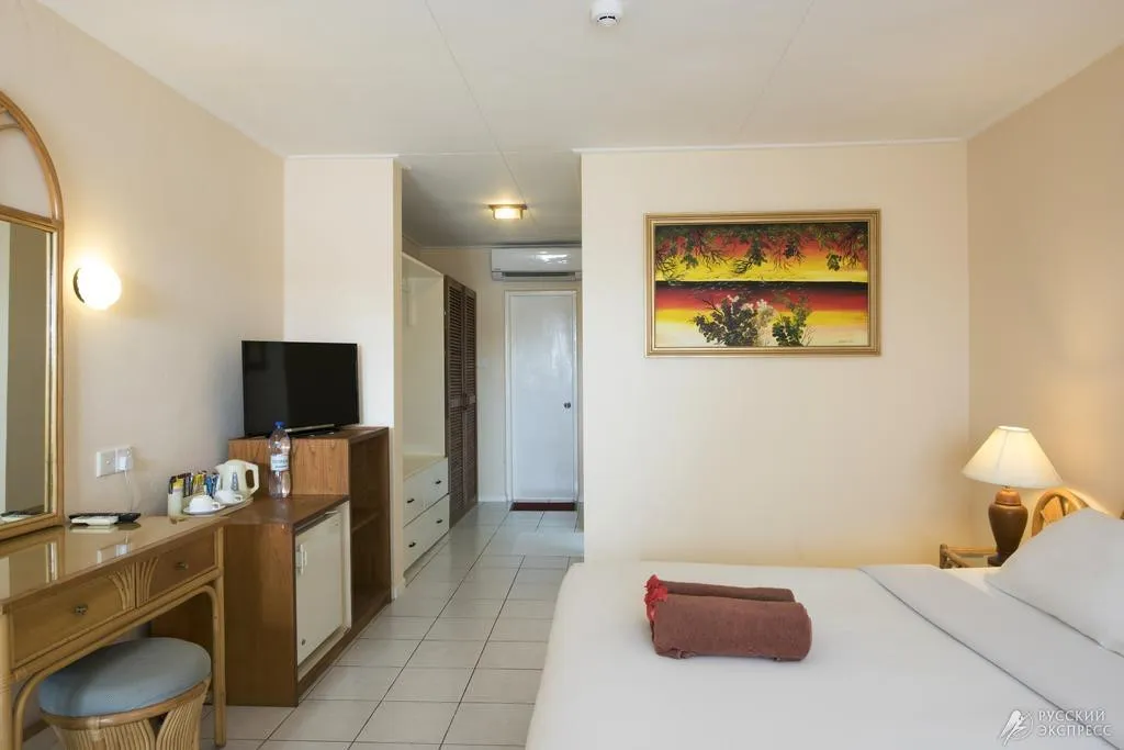 На территории отеля расположились невысокие по форме похожие на прямоугольник индивидуальные бунгало. Комплекс окружен благоустроенными садами с пышной тропической растительностью и великолепным голубым океаном – все это очень напоминает «необитаемый остров». Интерьер отеля модернизирован современными удобствами, изысканными элементами антиквариата, старинной мебелью и картинами местных художников. Принадлежит сети отелей Villa Hotels - мальдивский менеджмент.