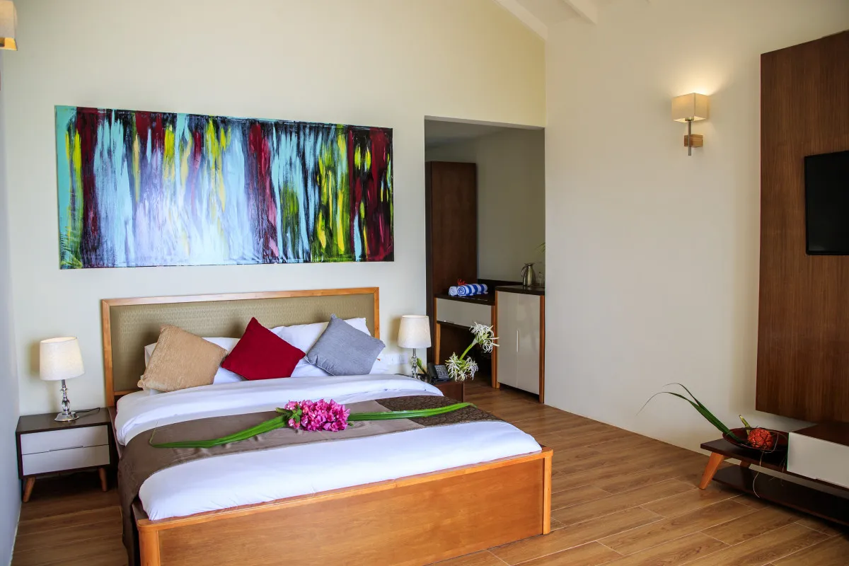 89 м2, вид на море, вилла имеет собственную террасу, внутри находится одна кровать размера king-size, ванная комната с душем на полуоткрытом пространстве. При бронировании данной категории номера предоставляется 2 бесплатные экскурсии за время проживания (снорклинг и рыбалка), а также ваучер 25 USD на услуги СПА-центра. Количество гостей: до двух человек