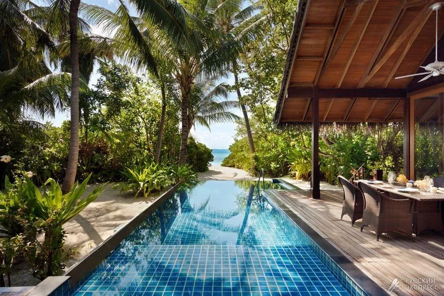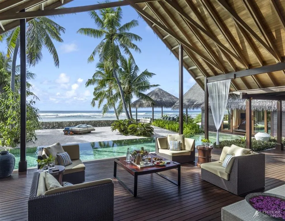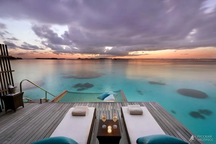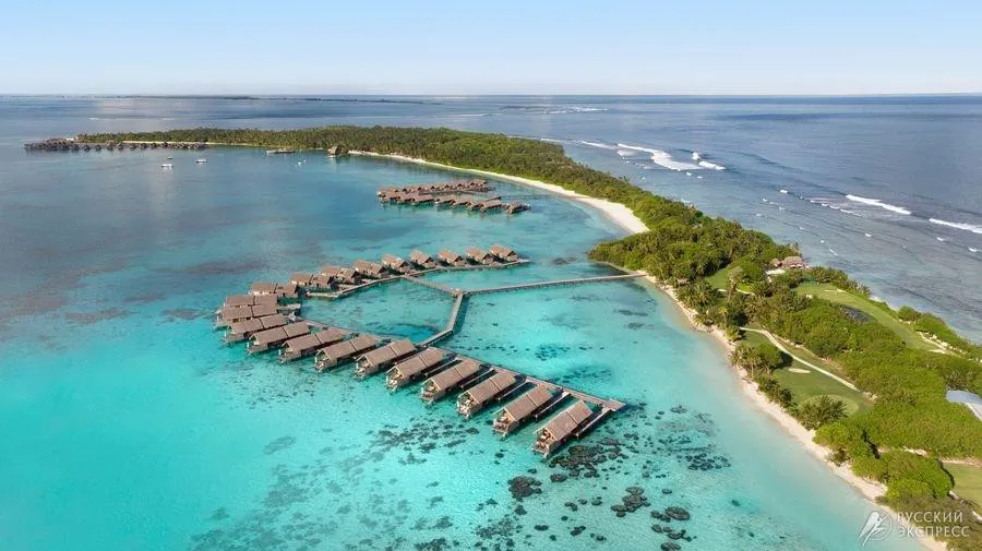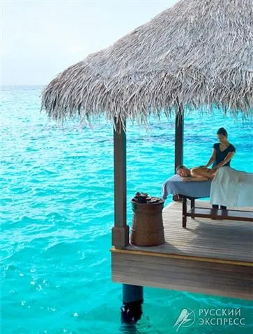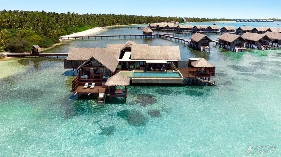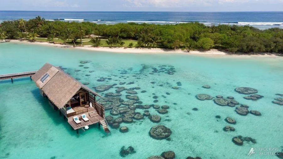 Отель на острове Villingili южнее экватора в Addu Atoll.