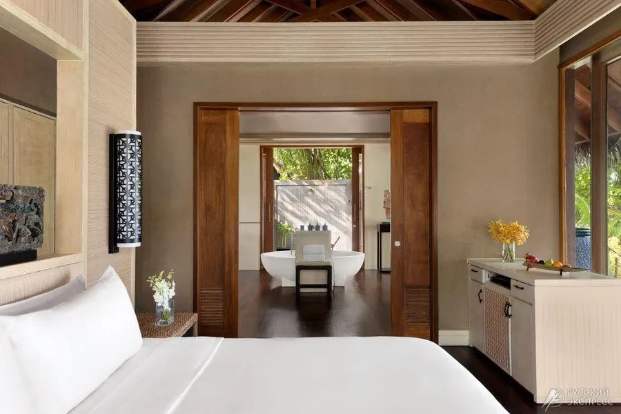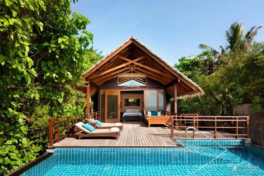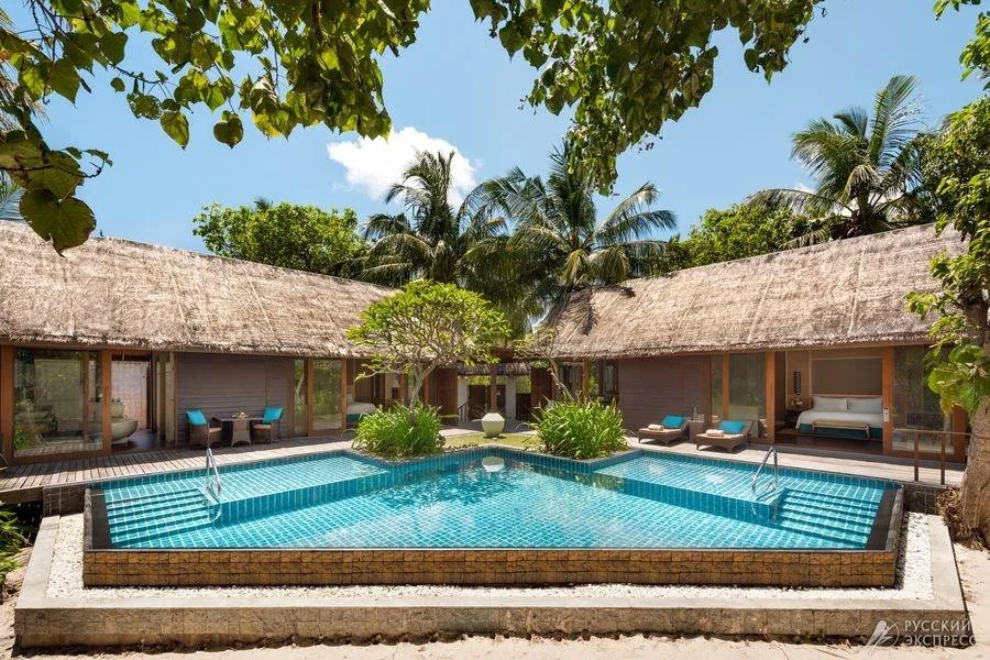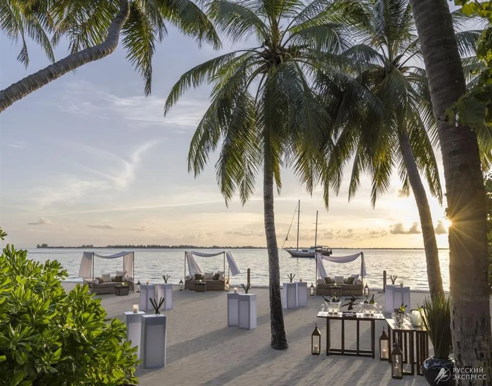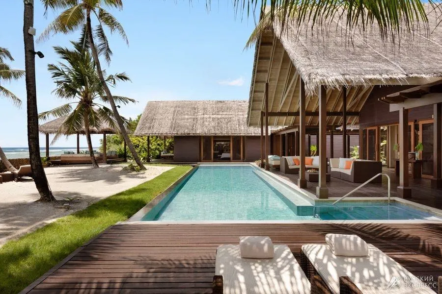 Отель на острове Villingili южнее экватора в Addu Atoll.