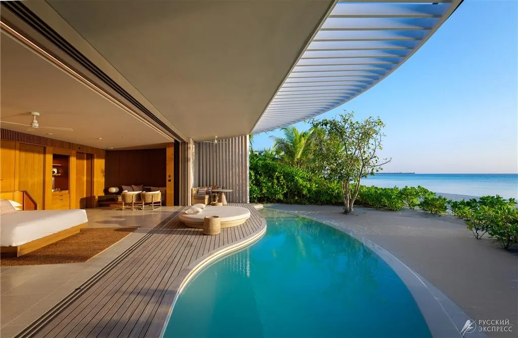 155 м2, терраса с выходом на пляж, видом на рассвет или закат, кровать king-size. Доступны смежные виллы. Максимальное количество гостей: 3.
