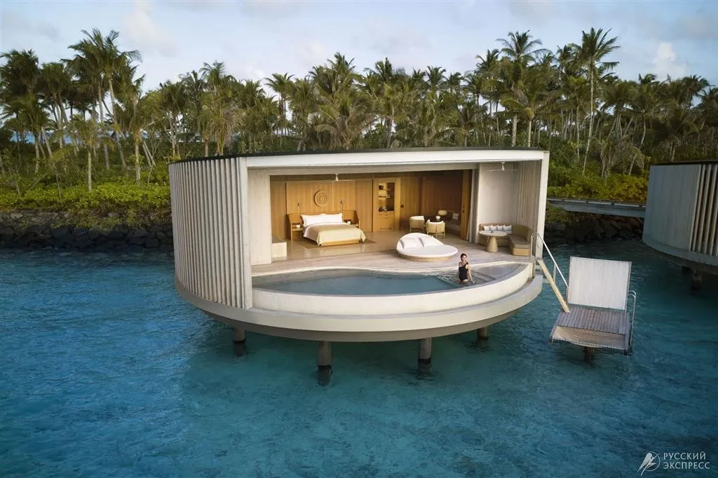 150 м2, терраса с видом на лагуну и закат, кровать king-size. Максимальное количество гостей: 3.
