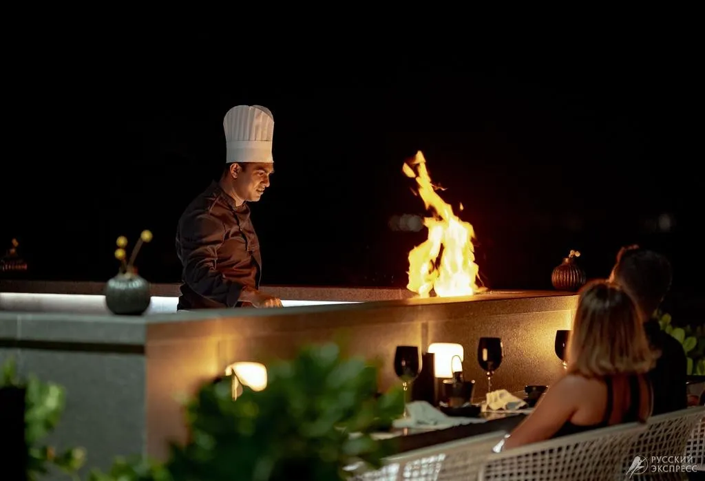 • IWAU – японский ресторан a la carte. Расположен на центральном острове. Время работы: с 18:30 до 22:00