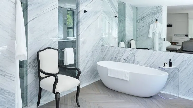 60 м2, люкс с видом на парк, кроватью king-size, гостиной зоной, рабочим столом, дизайнерской ванной комнатой, террасой с обеденной зоной. Максимальное количество гостей: 3.