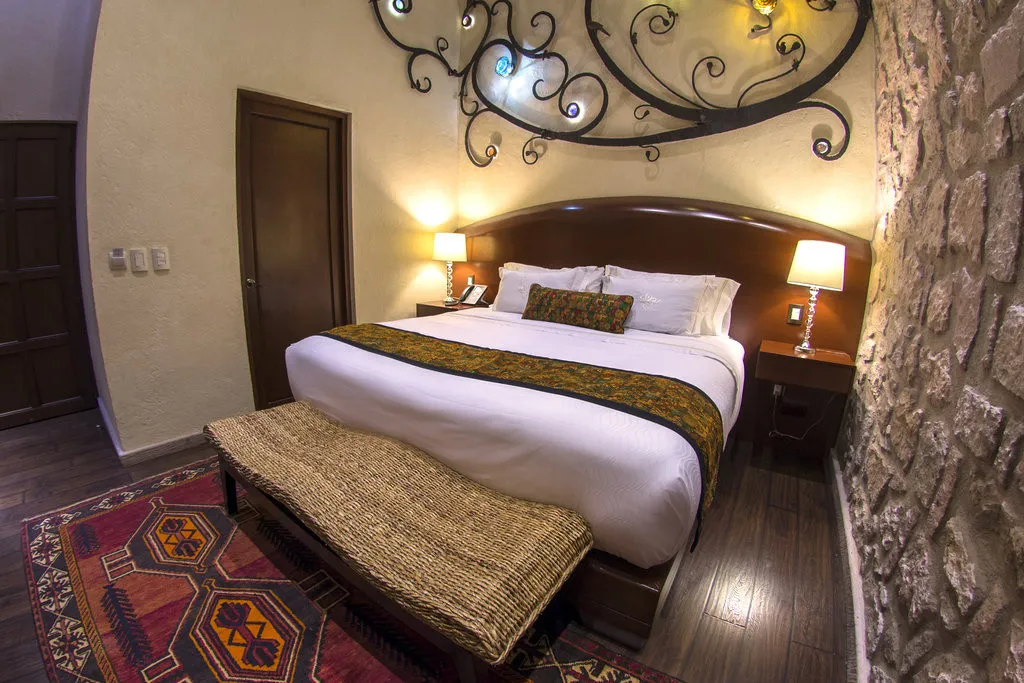 главный номер отеля с кроватью king-size, украшенный резными деталями и декоративными элементами, выполненными вручную местными мастерами. Интерьер отражает атмосферу колониальной Морелии. Максимальное количество гостей: 2.