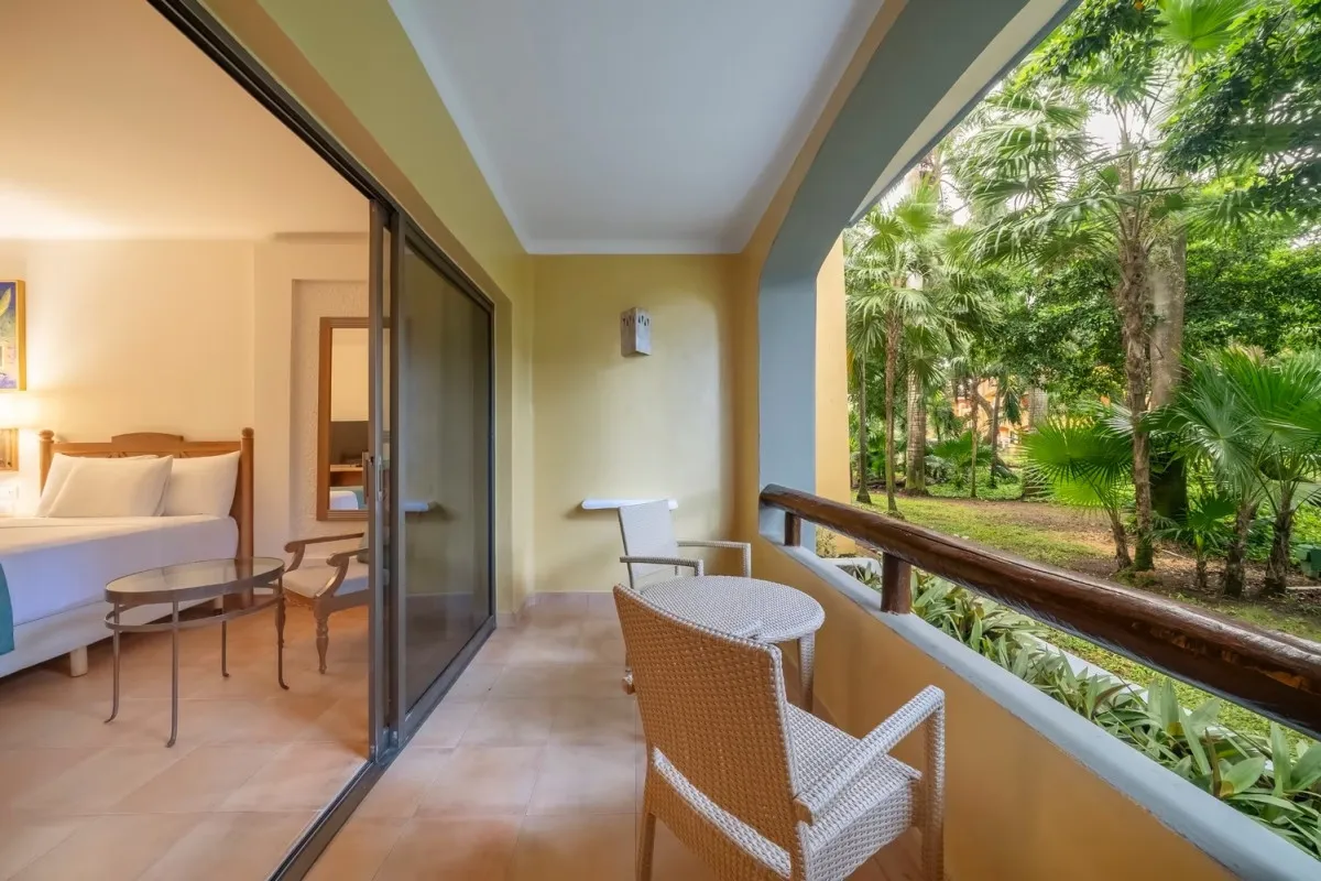 45 м2, двуспальная кровать размера «king-size» или две односпальные кровати, расположение рядом с бассейном, балкон или терраса с видом на джунгли