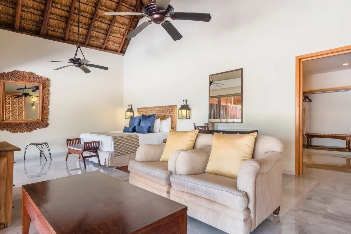 45 м2, двуспальная кровать размера «king-size» или две односпальные кровати, расположение рядом с пляжем, балкон или терраса с видом на джунгли
