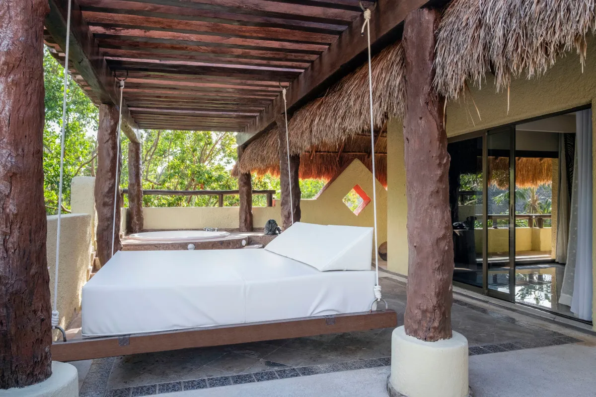 240 м2, двуспальная кровать размера «king-size», гостиная, мини-кухня, расположение рядом с пляжем и бассейном, терраса с джакузи и видом на джунгли