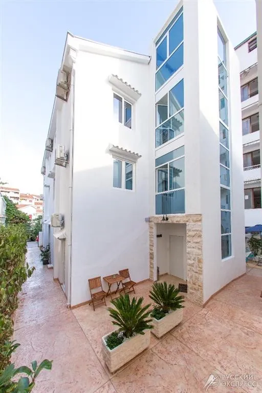 Дом расположен в тихом районе в Будвы, в 150 м от «Славянского пляжа», через дорогу. Рядом с виллой расположено множество магазинов, ресторанов и кафе.