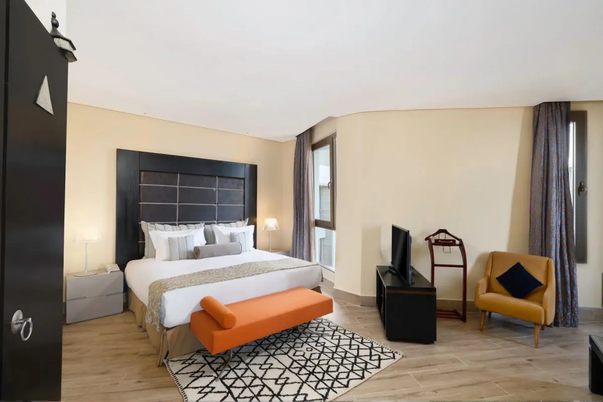 Номера и люксы оснащены кондиционерами, спутниковым телевидением и мини-барами. Некоторые из них располагают балконами с видом на океан, сады андалузского стиля или историческую медину. Пространства курорта пронизаны атмосферой уюта и спокойствия, вдохновленной характером самого города.