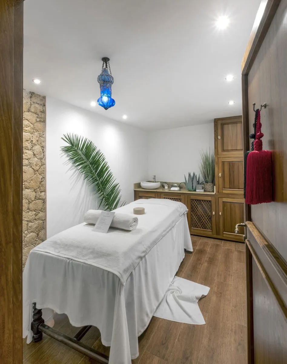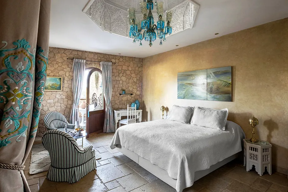 Отель La Sultana Oualidia 5* предлагает 12 изысканно оформленных номеров и люксов, каждый из которых уникален по своему дизайну. Интерьеры сочетают роскошь и элегантность: потолки из олеандрового дерева, каменные стены с отделкой таделакт, окрашенная деревянная мебель и полы из состаренного мрамора создают атмосферу природной утонченности. Все номера оснащены собственными террасами с джакузи.