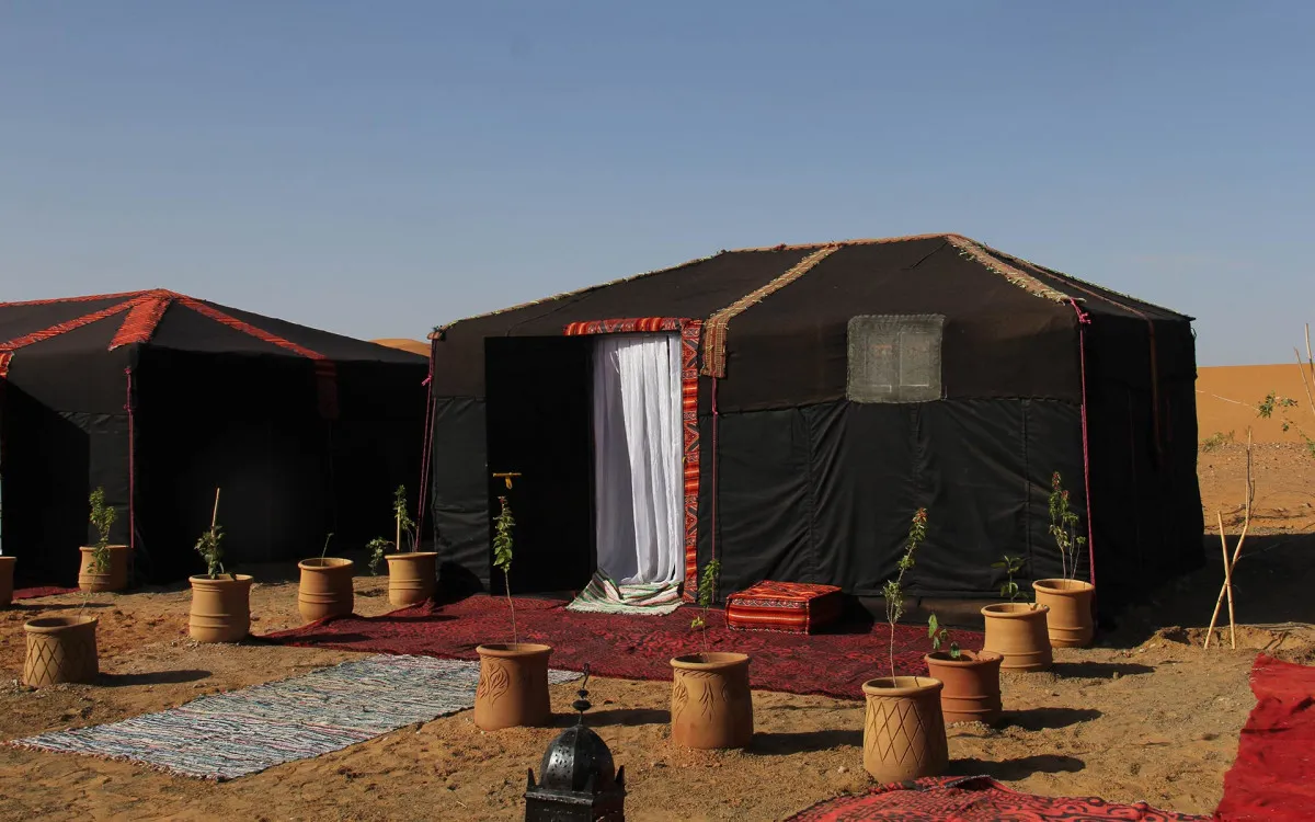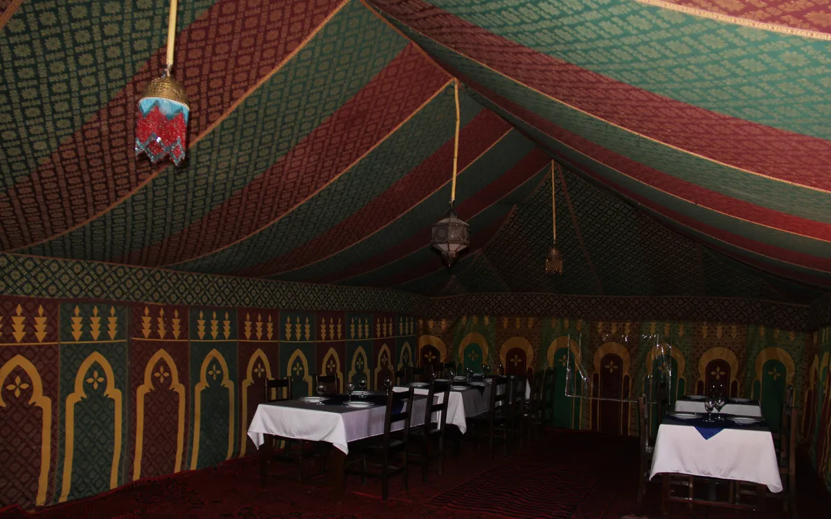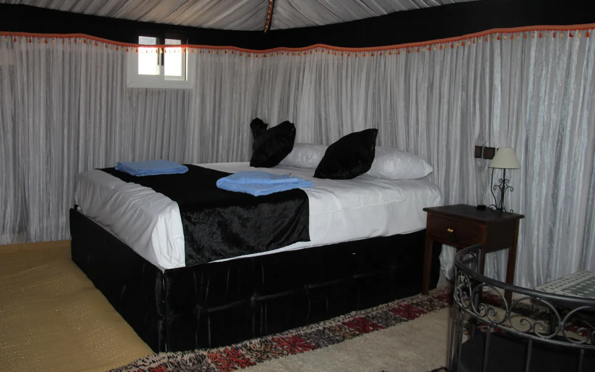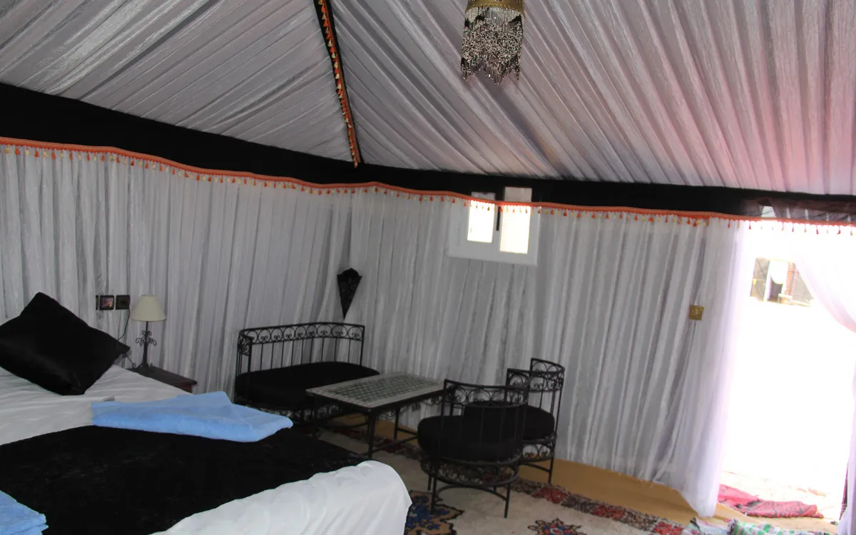 Размещение оформлено с акцентом на роскошь и комфорт. Интерьеры сочетают традиционные элементы берберской культуры с современными удобствами, создавая уникальное пространство для отдыха в пустыне.