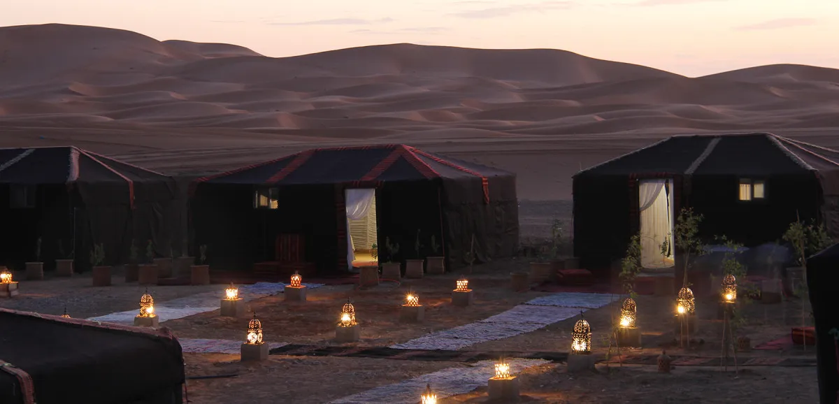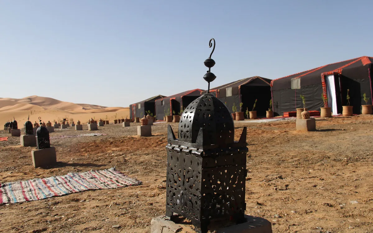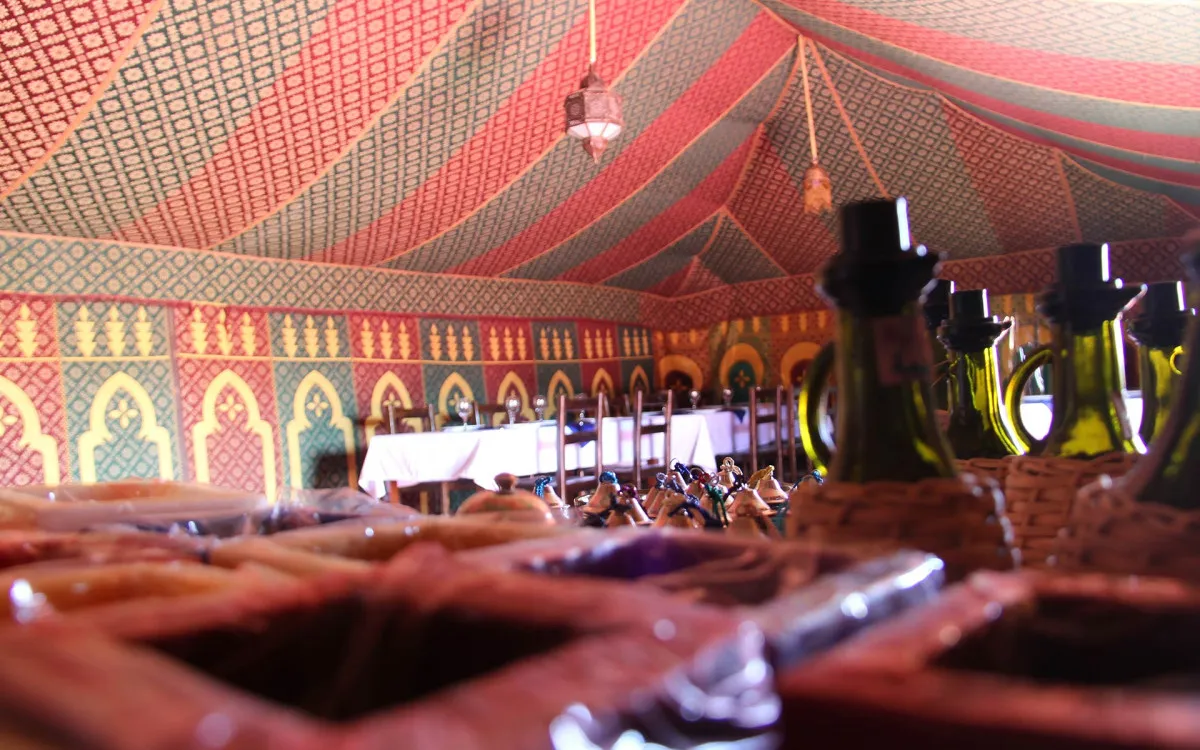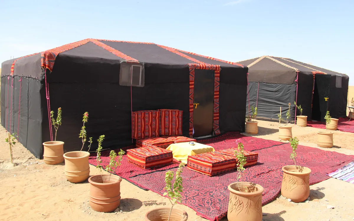 Размещение оформлено с акцентом на роскошь и комфорт. Интерьеры сочетают традиционные элементы берберской культуры с современными удобствами, создавая уникальное пространство для отдыха в пустыне.